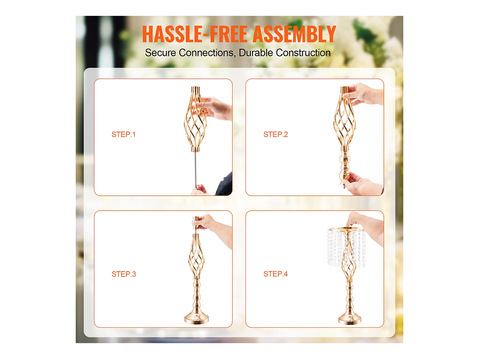 Vase SucceBuy Vase 24 Pièces 50 cm, Centre de Table en Métal, Doré, Floral, Fête de Mariage, Métal/Or