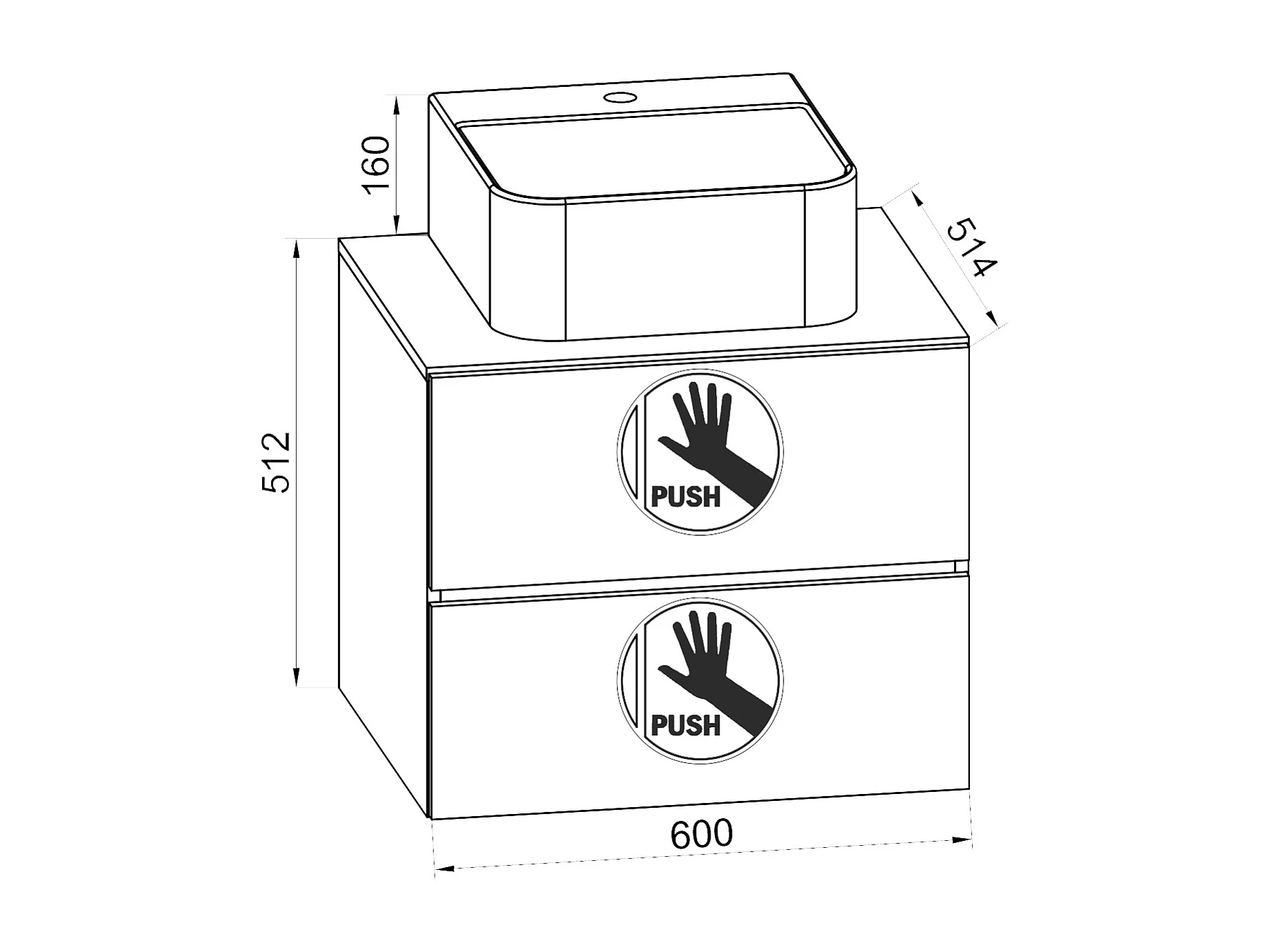 Bathroom furniture washbasin Lendas Honey oak H. 52 x W. 60 x D. 52 cm