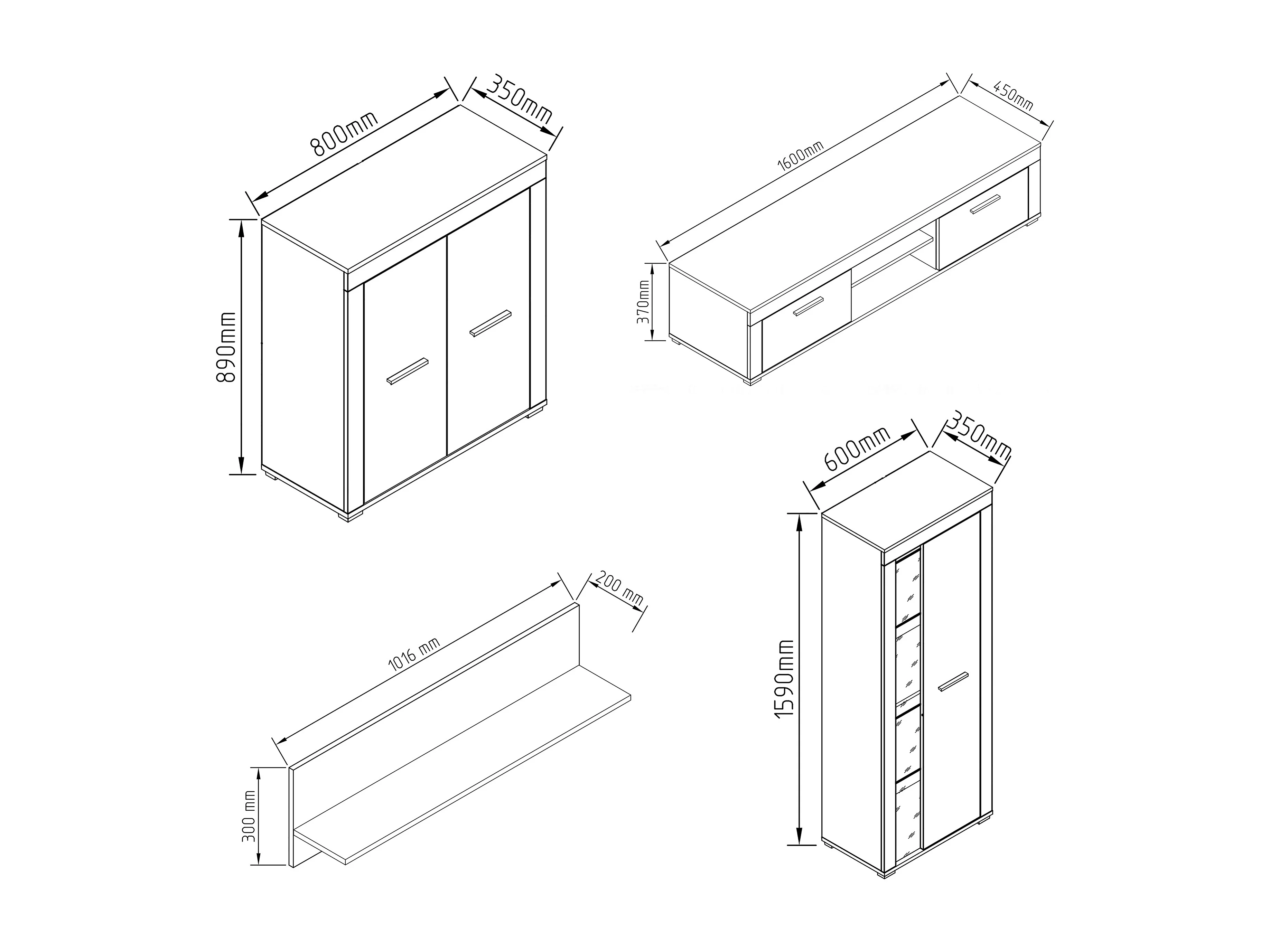 TV Furniture Usilo White / Honey oak H. 159 x W. 300 x D. 37 cm