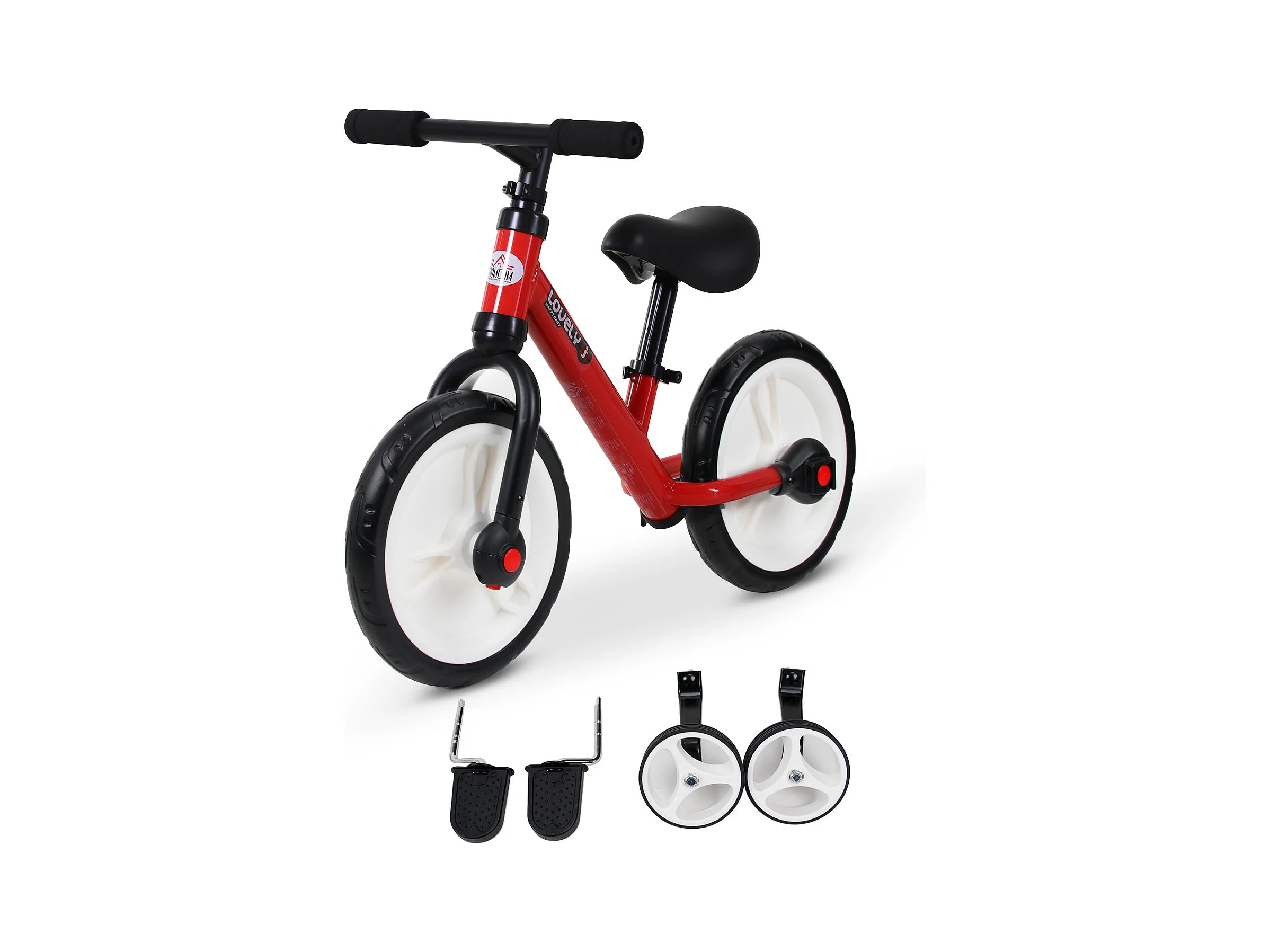 Vélo enfant draisienne 2 en 1 roulettes et pédales amovibles roues 12" hauteur selle réglable acier rouge