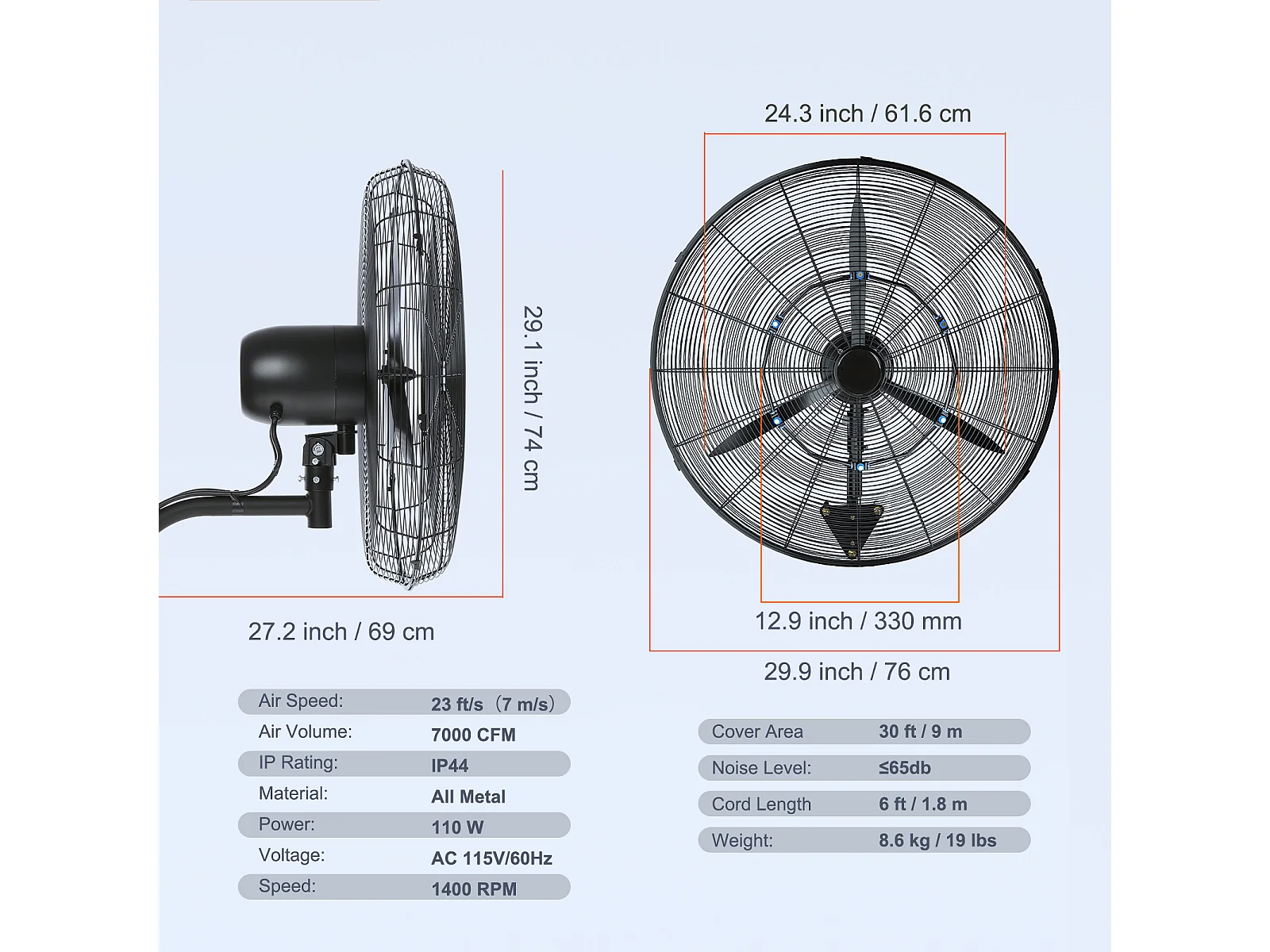Ventilateur Brumisateur, SucceBuy Ventilateur Brumisateur Mural 74.9cm 9500 CFM 3 Vitesses