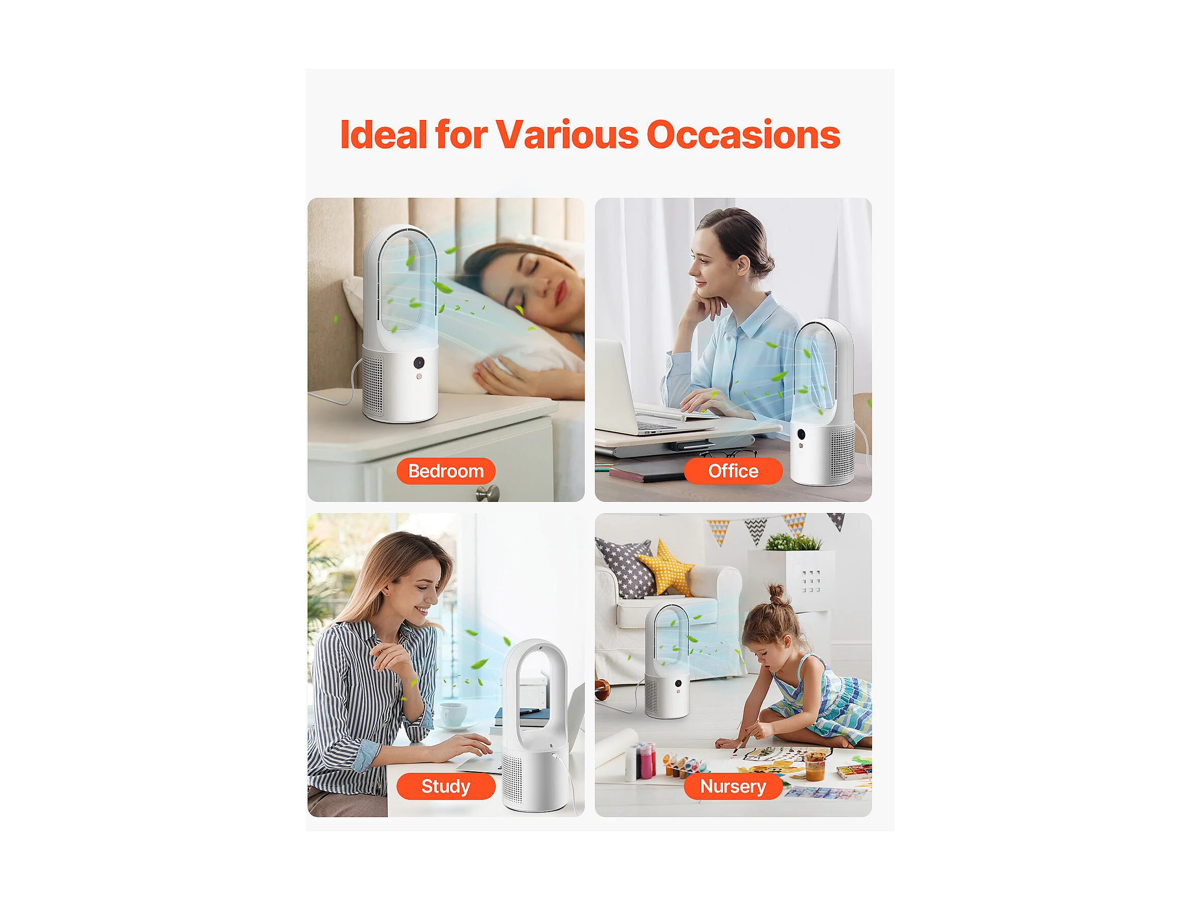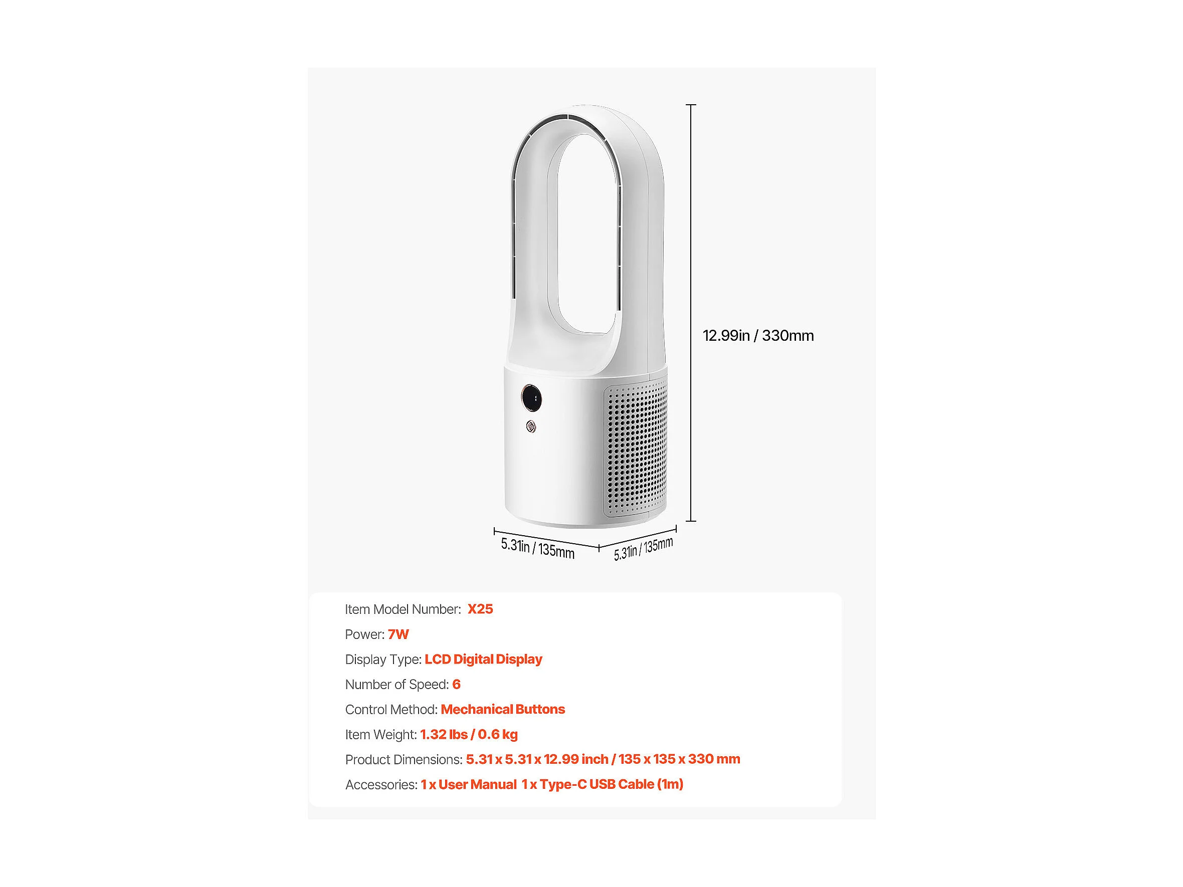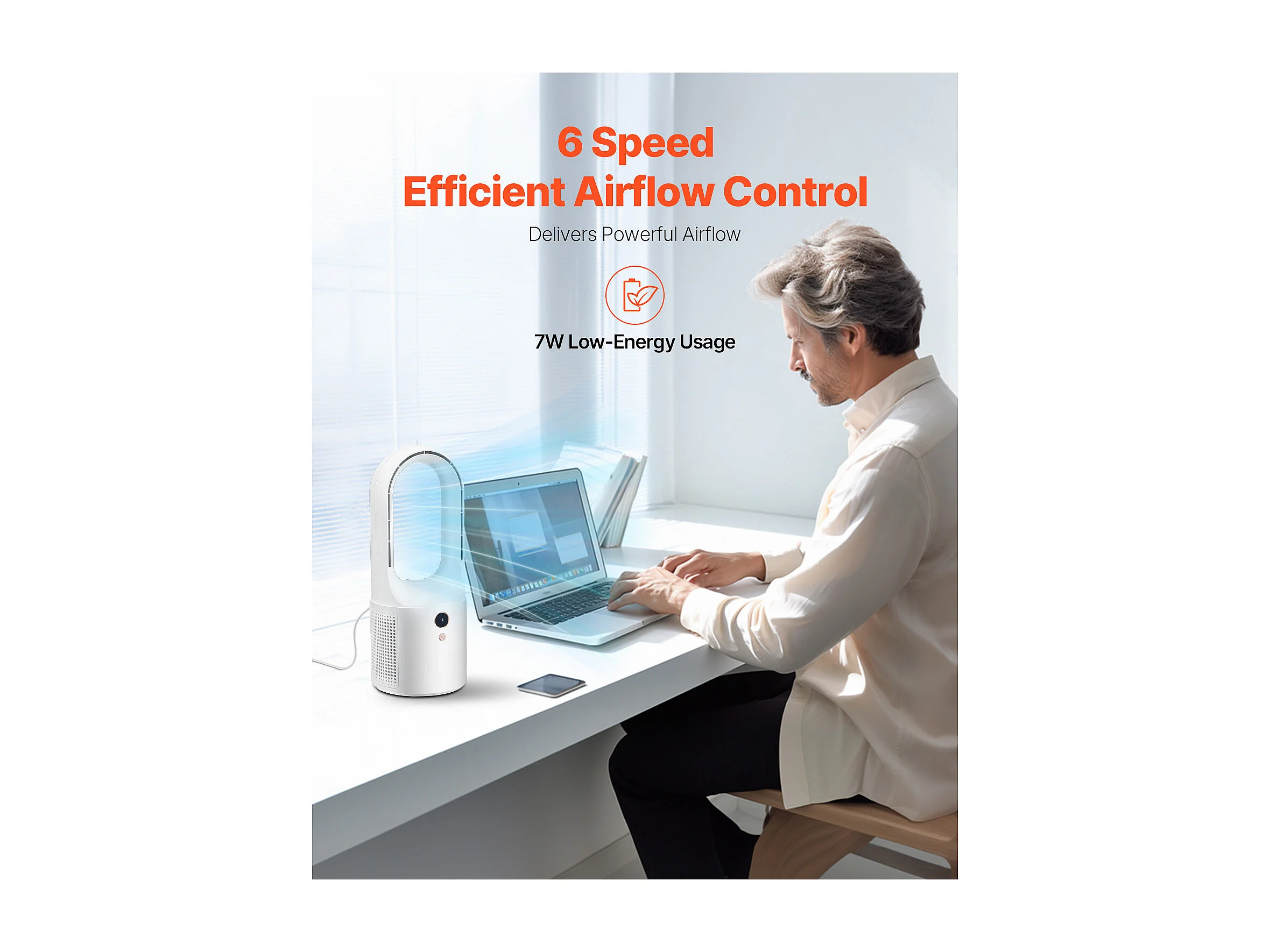 Ventilateur SucceBuy de Bureau Portable sans Pales 33cm, Ventilateur de Table Silencieux à 6 Vitesses pour Chambre et Bureau