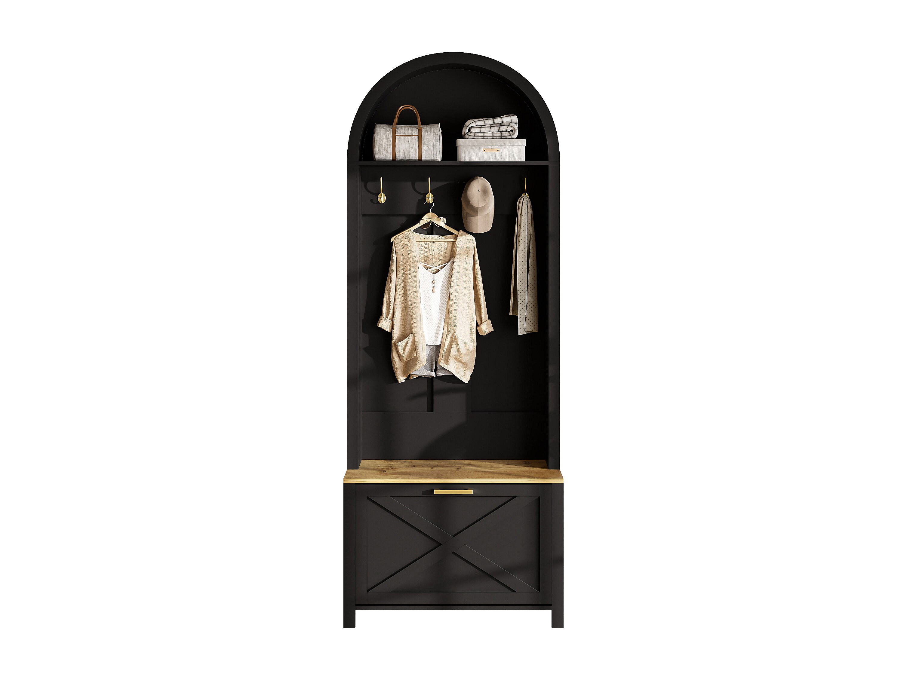 Vestiaire - 120 x 40 x 191 cm - avec banc à chaussures + armoire + 6 crochets triples - aggloméré - noir
