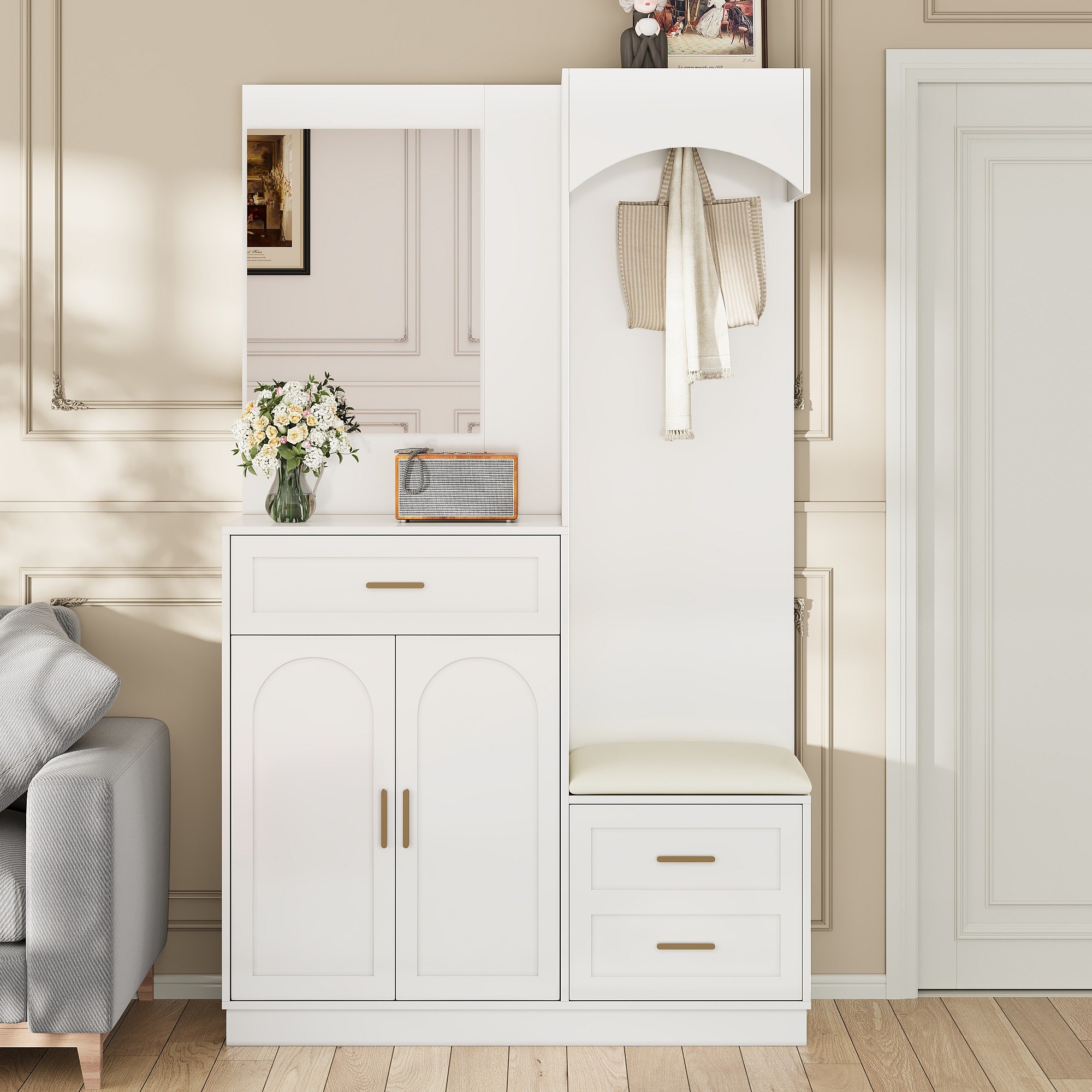 Vestiaire/armoire de rangement avec miroir + meubles de chaussures - crochets en métal - 78 x 38.5 x 180.5 cm - MDF - blanc