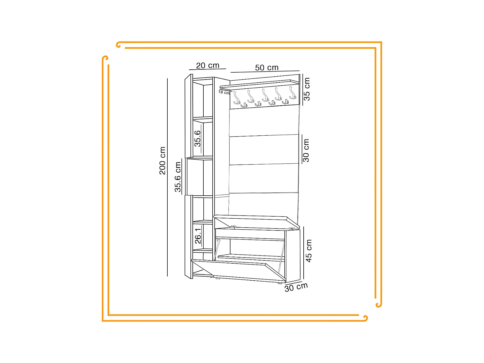 Vestiaire d'entrée avec assise, patère, panneau rembourré – Chêne doré et noir
