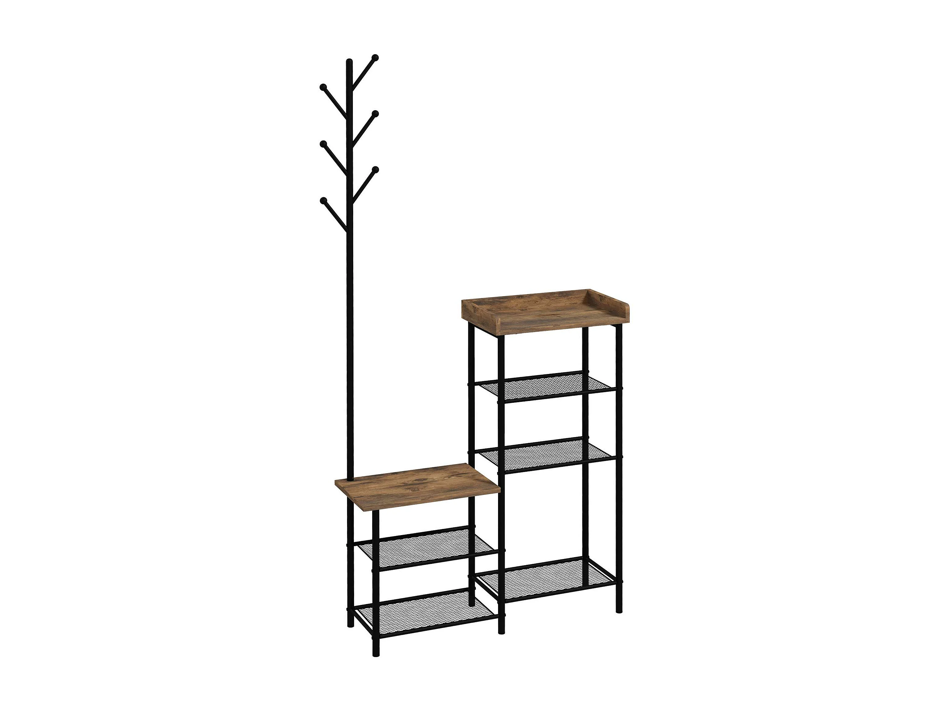 Vestiaire d'entrée banc porte-manteaux avec étagère à chaussures style industriel acier noir aspect bois