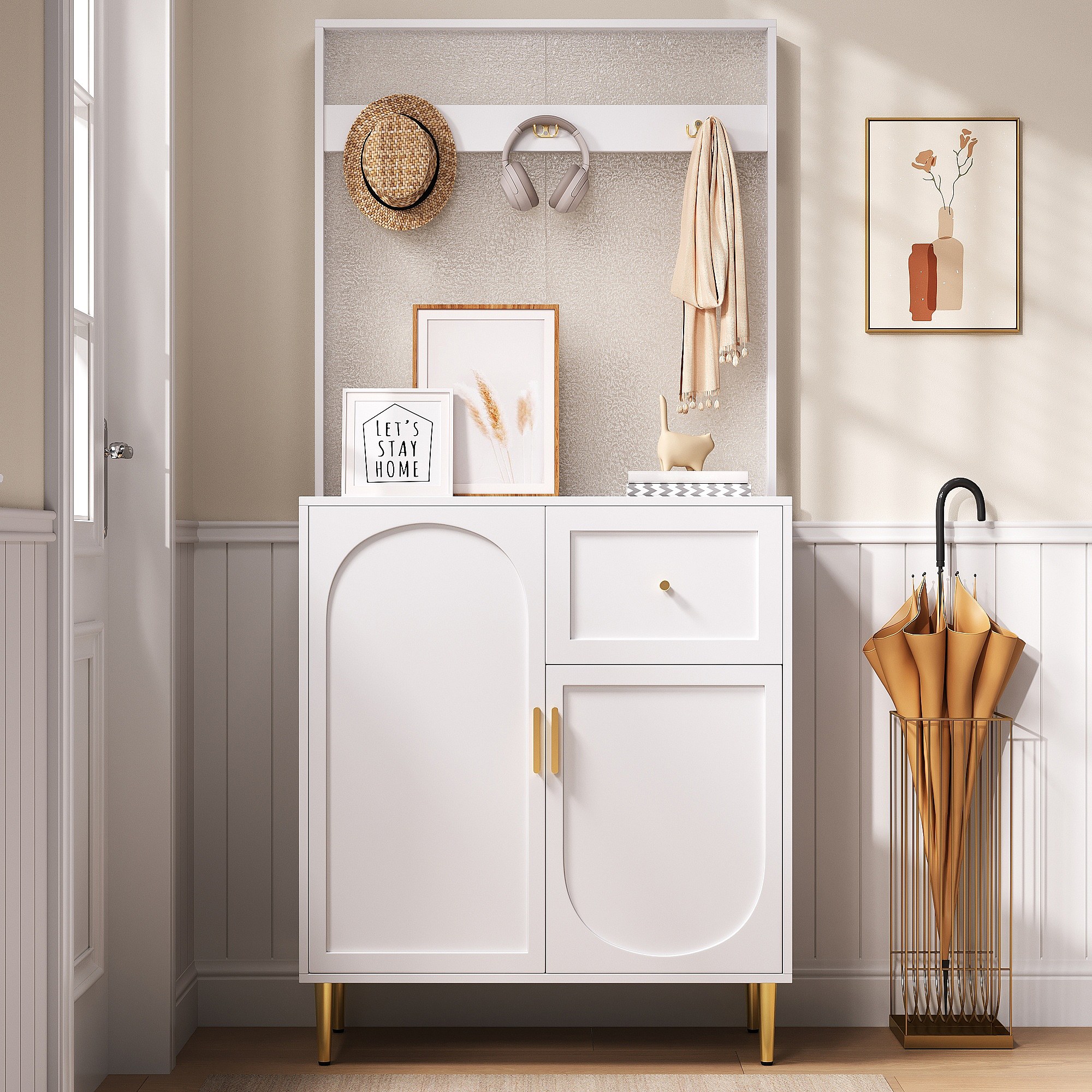 Vestiaire 4 en 1 avec miroir + 2 étagères à chapeaux + meuble à chaussures - 90 x 30 x 41.5 cm - aggloméré - blanc.