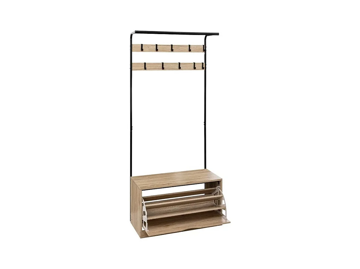 Vestiaire avec porte manteau et un banc à chaussures - étagères réglables - Naturel