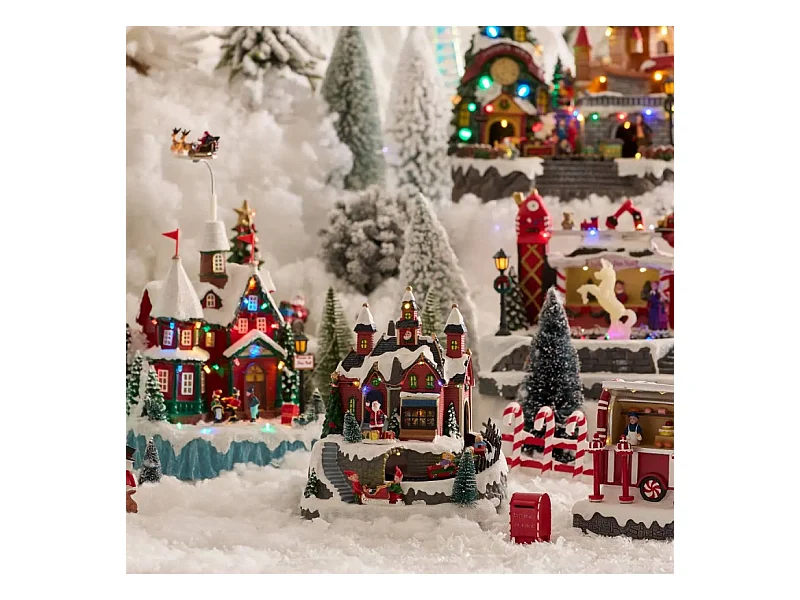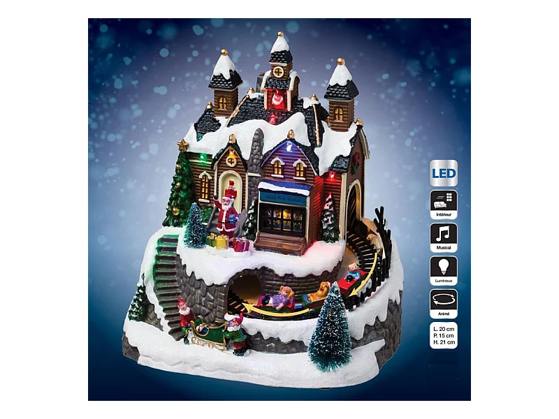 Village de Noël lumineux, animé et musical Maison du Père Noël avec train