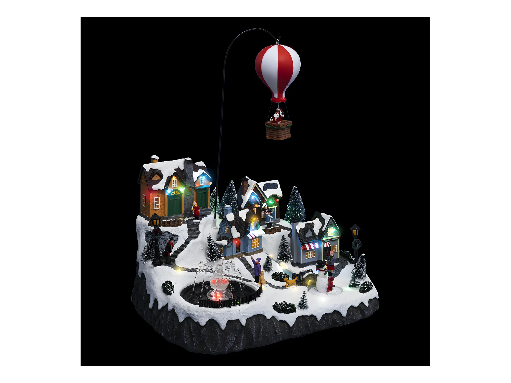 Village de Noël lumineux, animé et musical Père Noël dans sa Mongolfière