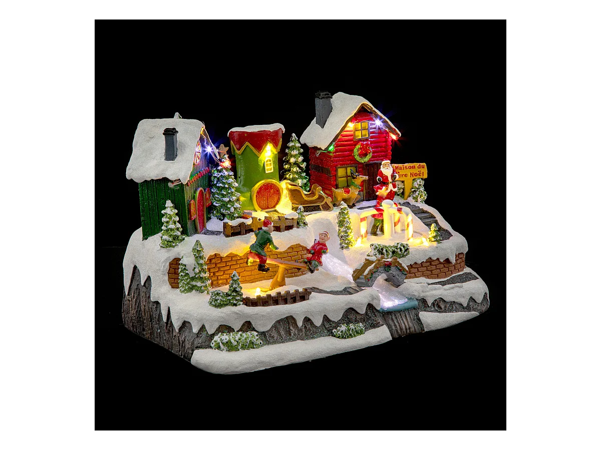 Village de Noël lumineux, animé et musical Père Noël et Lutins