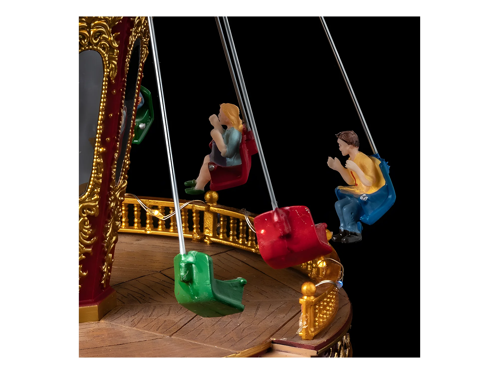 Village de Noël lumineux et musical Carrousel de chaises volantes animé