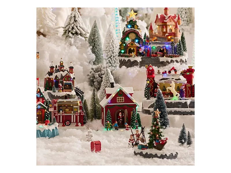 Village lumineux maison Père Noël et enfants 16 LED animé