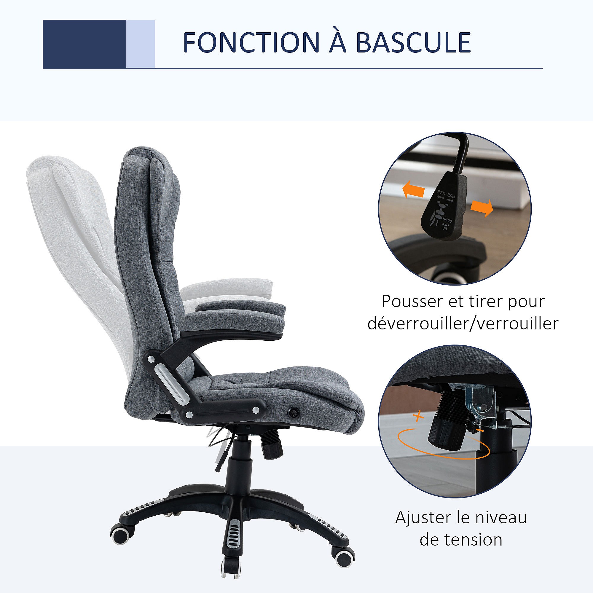 Vinsetto Fauteuil de bureau direction ergonomique hauteur réglable dossier inclinable toile de lin gris chiné