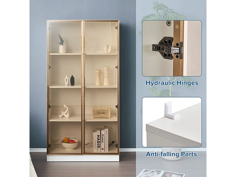 Vitrine 4 portes en verre marron - avec LED 16 couleurs - étagères mobiles - Panneau de particule - 160x40x160cm