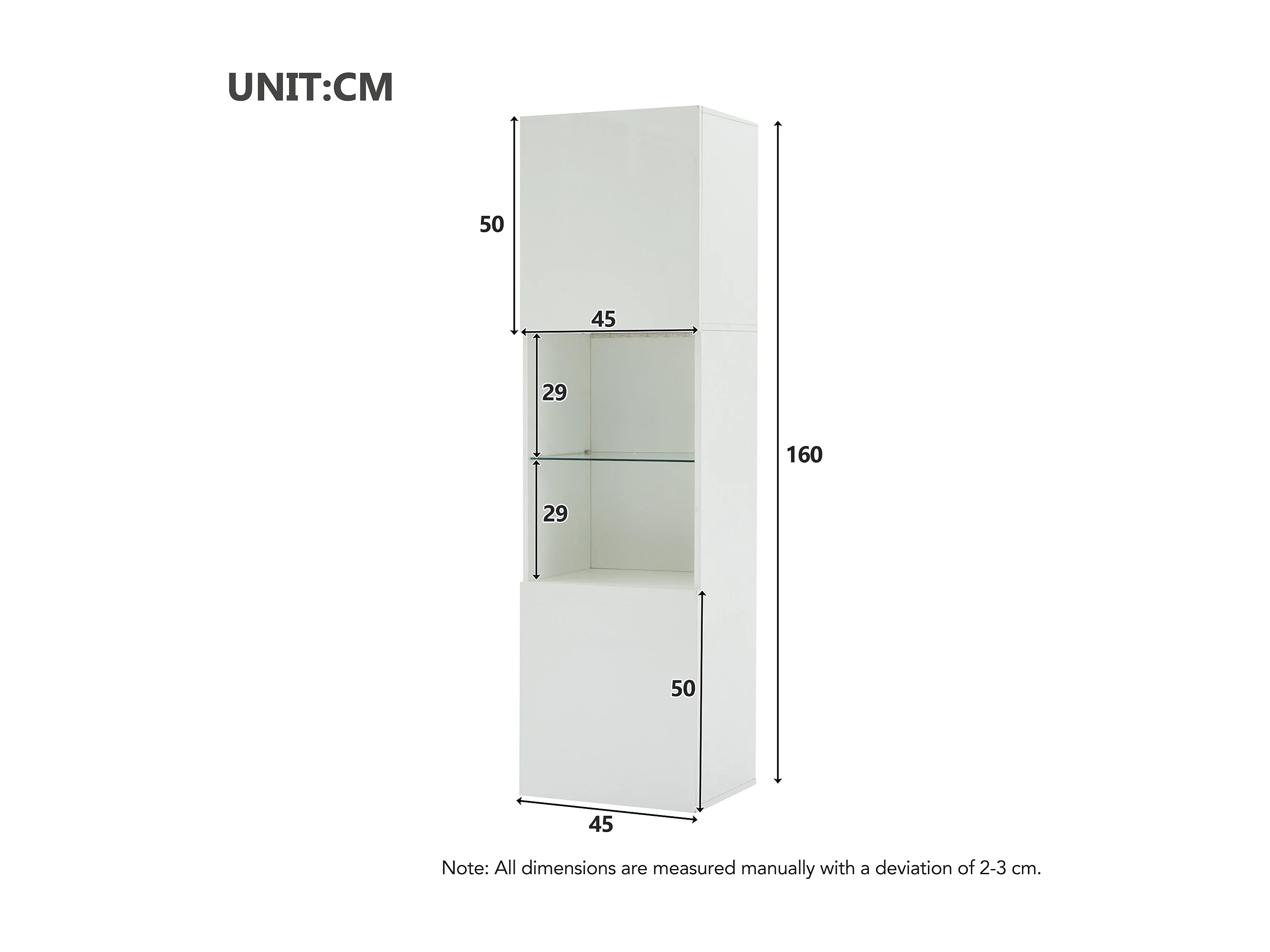 Vitrine 45x35x160 cm LED 2 portes 1 étagères en verre - meuble de rangement - bois - blanc