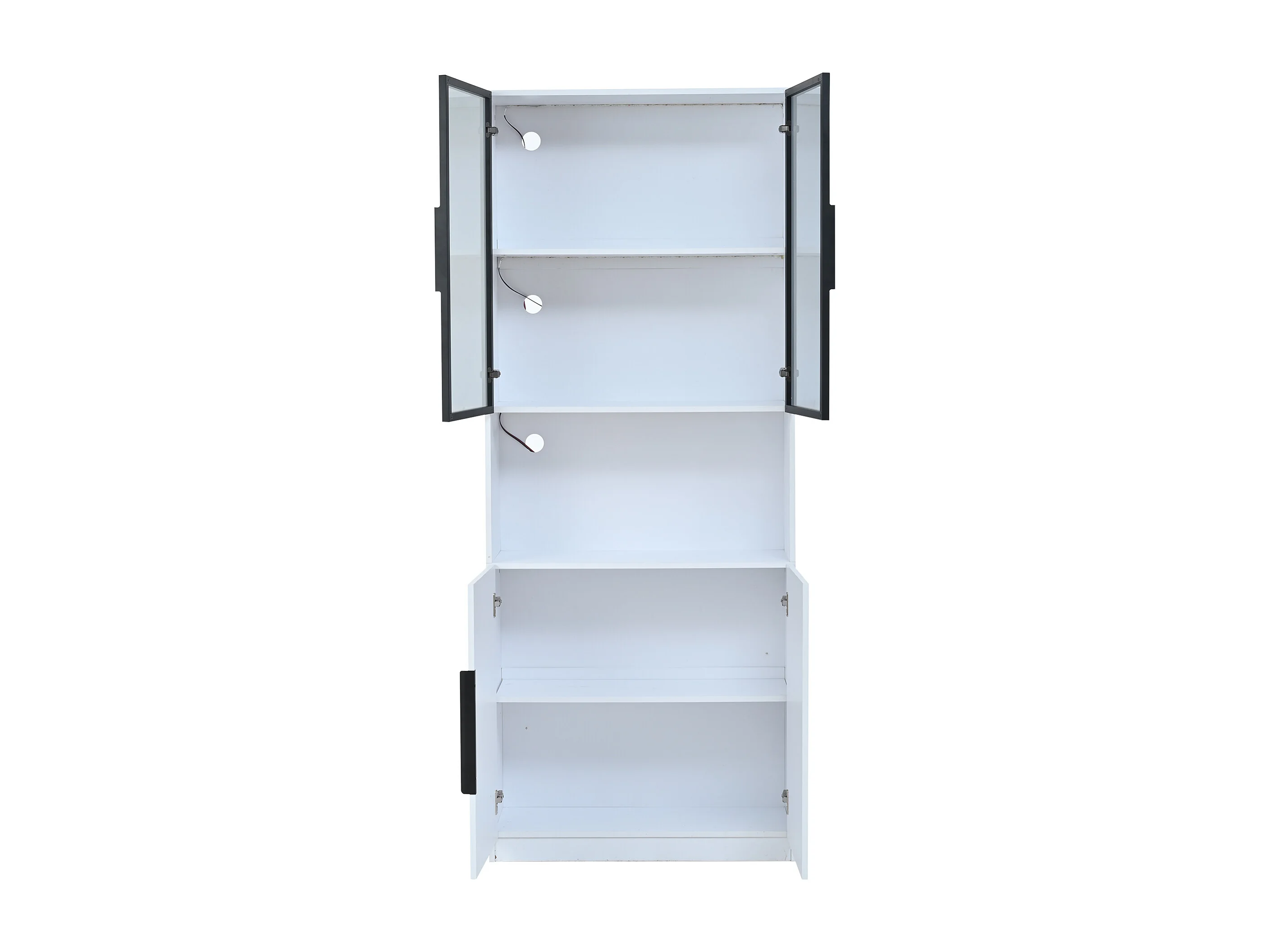 Vitrine avec 2 portes vitrées et LED - Blanche 80 x 30 x 200 cm - Bois en PB