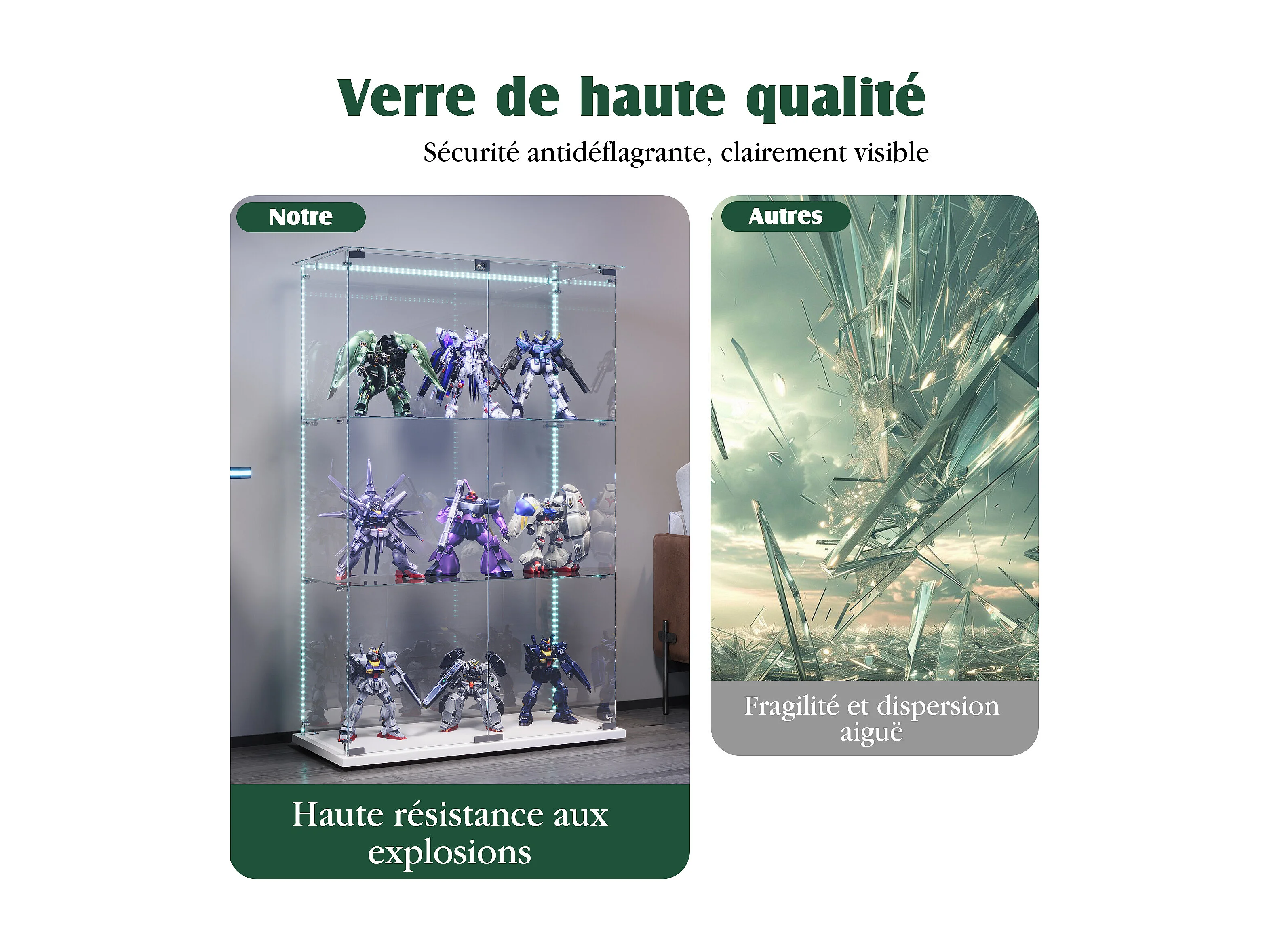 Vitrine avec éclairage LED, vitrine sur pied avec serrure, 2 portes et 3 étagères, 123.3 x 78,5 x 35 cm,blanc