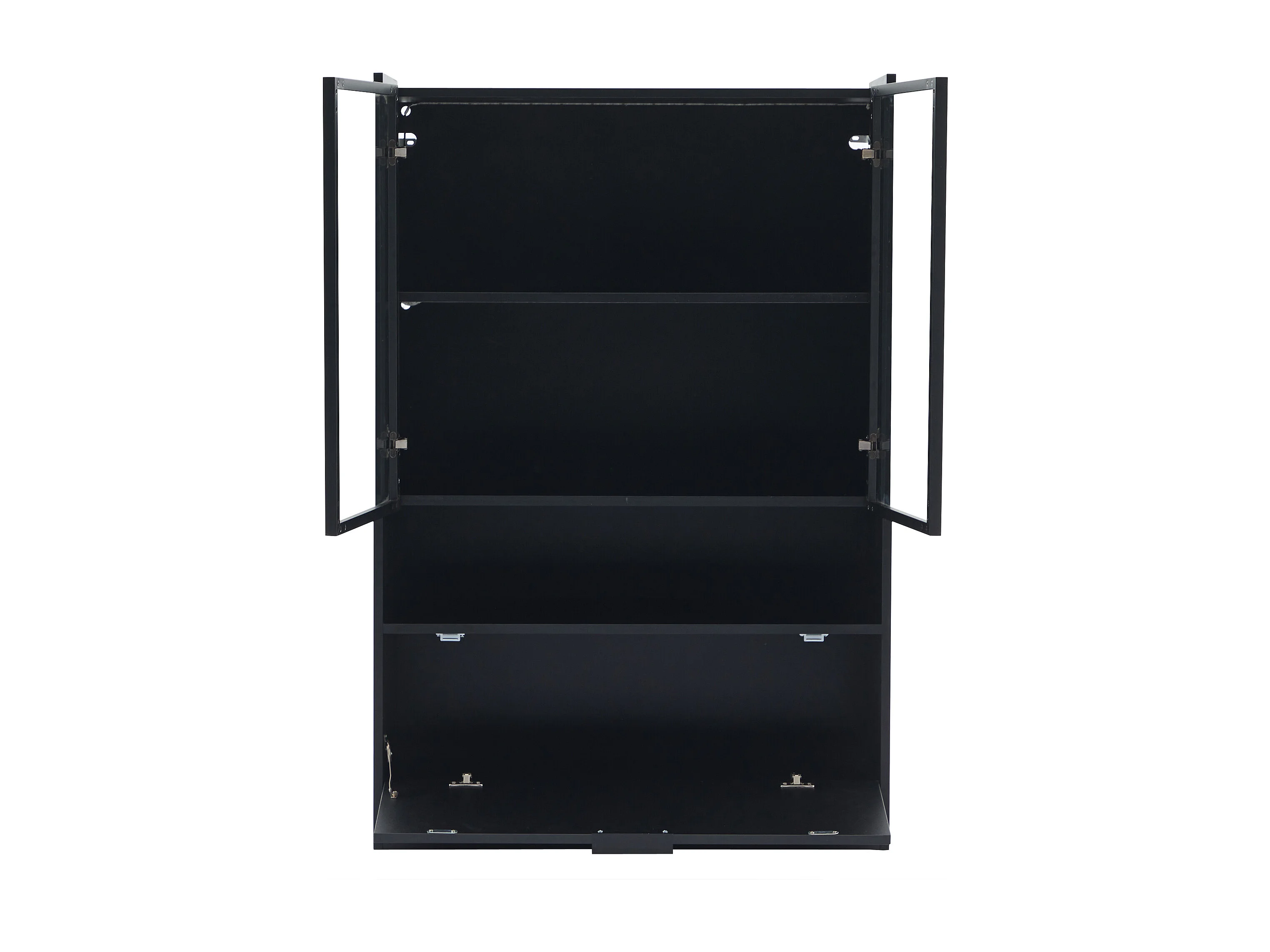 Vitrine à LED 2 portes bois vernis brillant noir et doré Jade 60cm