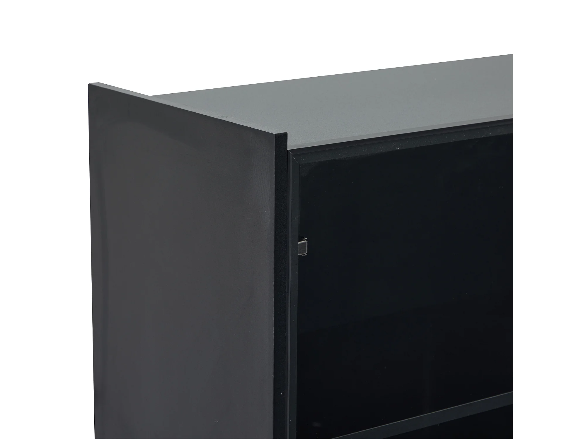 Vitrine 4 portes 1 tiroir bois vernis laqué brillant noir et gris Venus 105cm