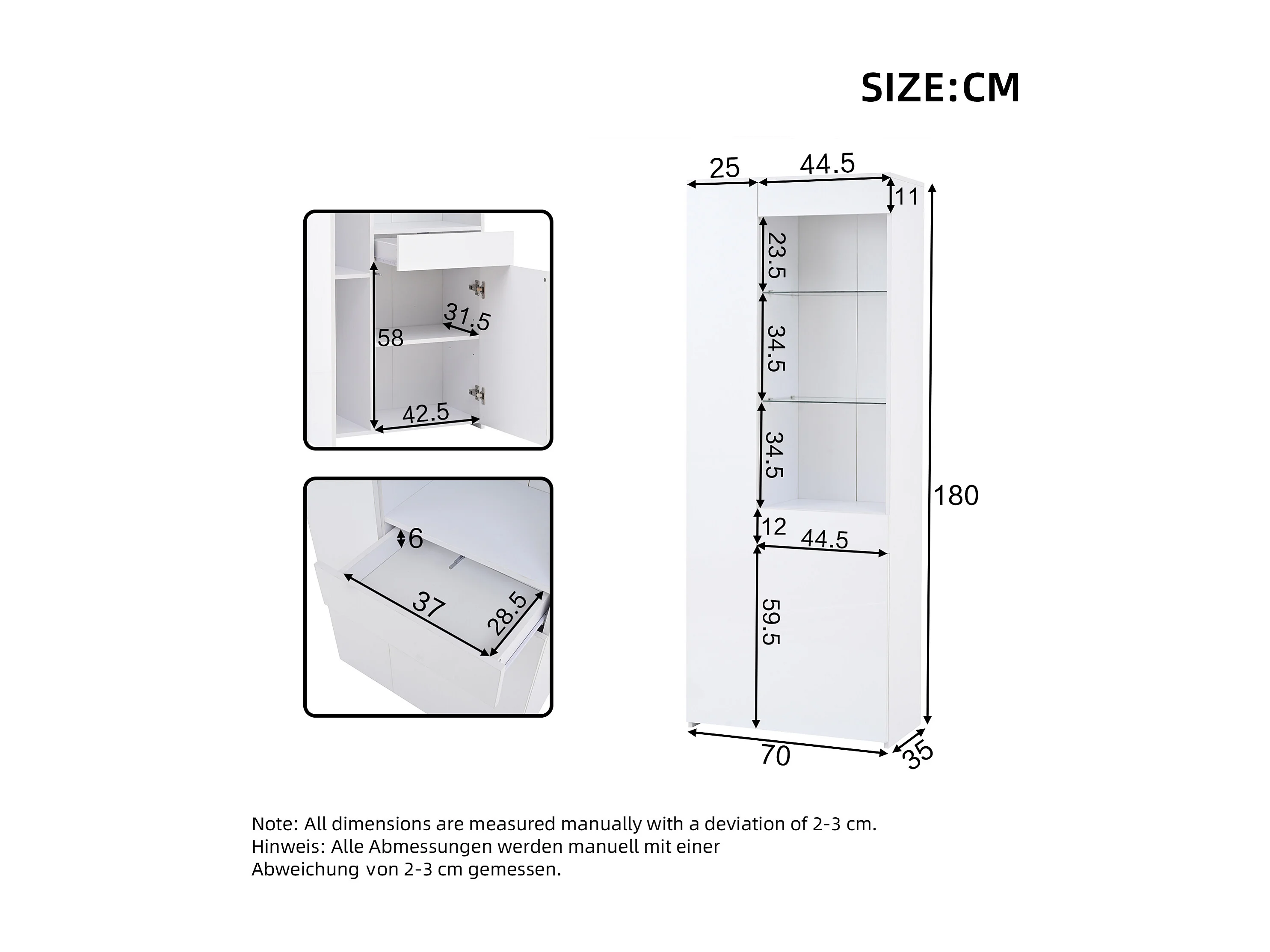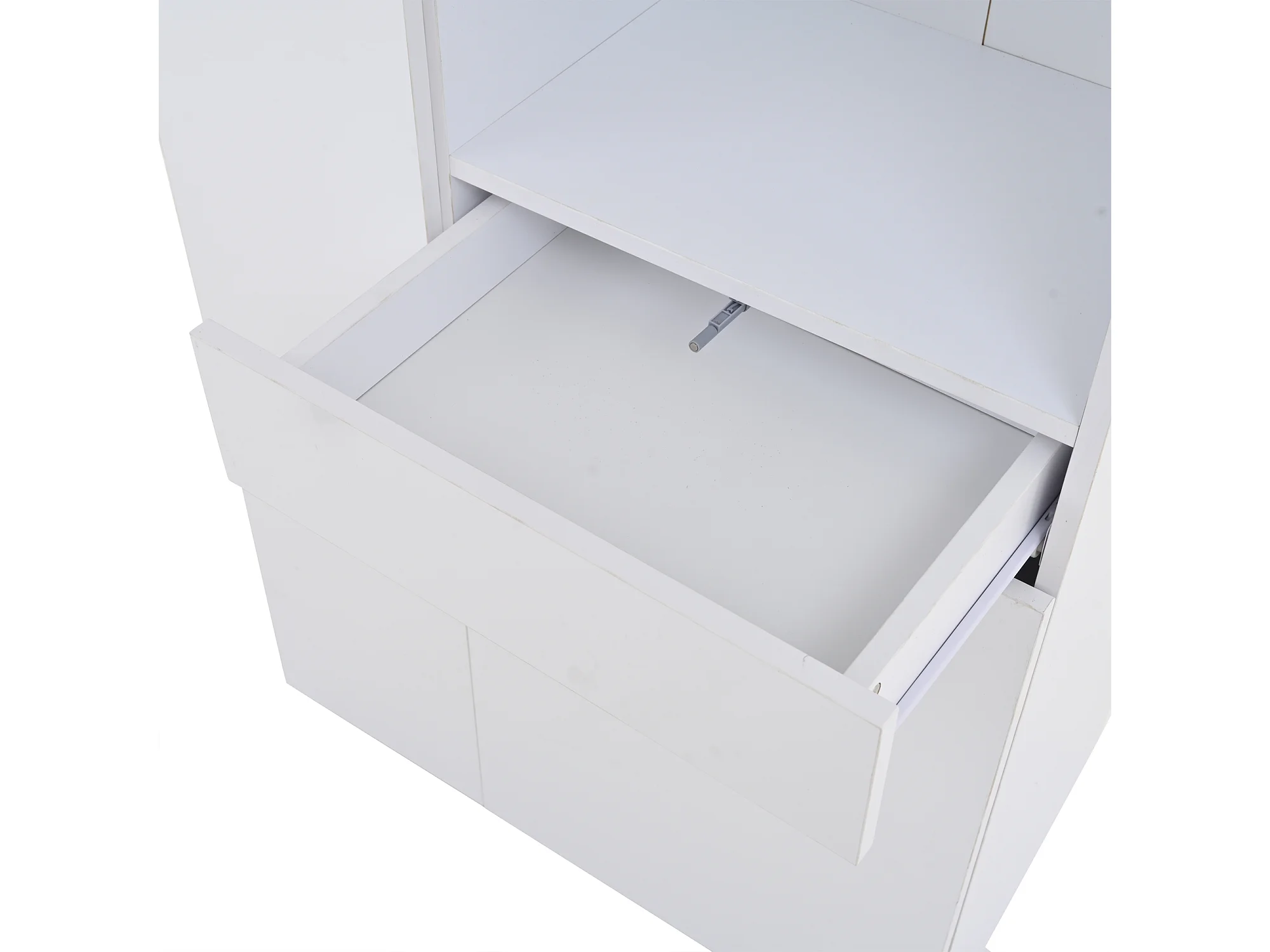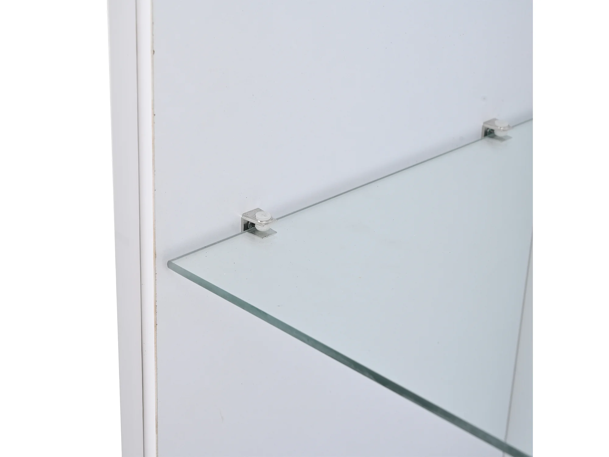 Vitrine blanc avec éclairage LED - Vitrine 2 portes et 1 tiroir - 3 espaces de rangement ouverts