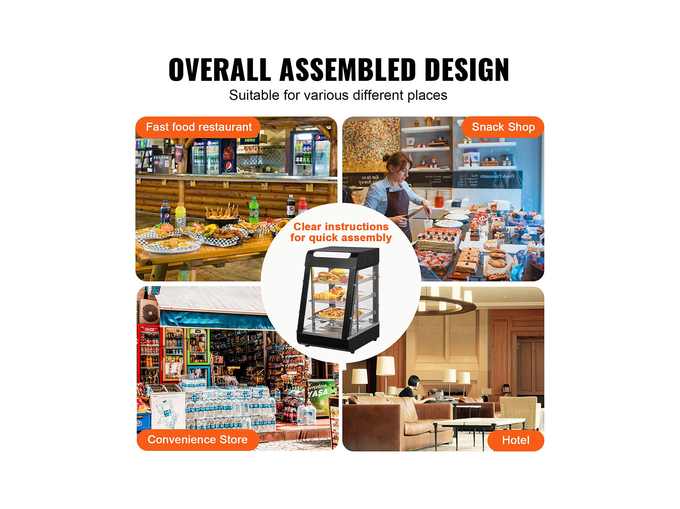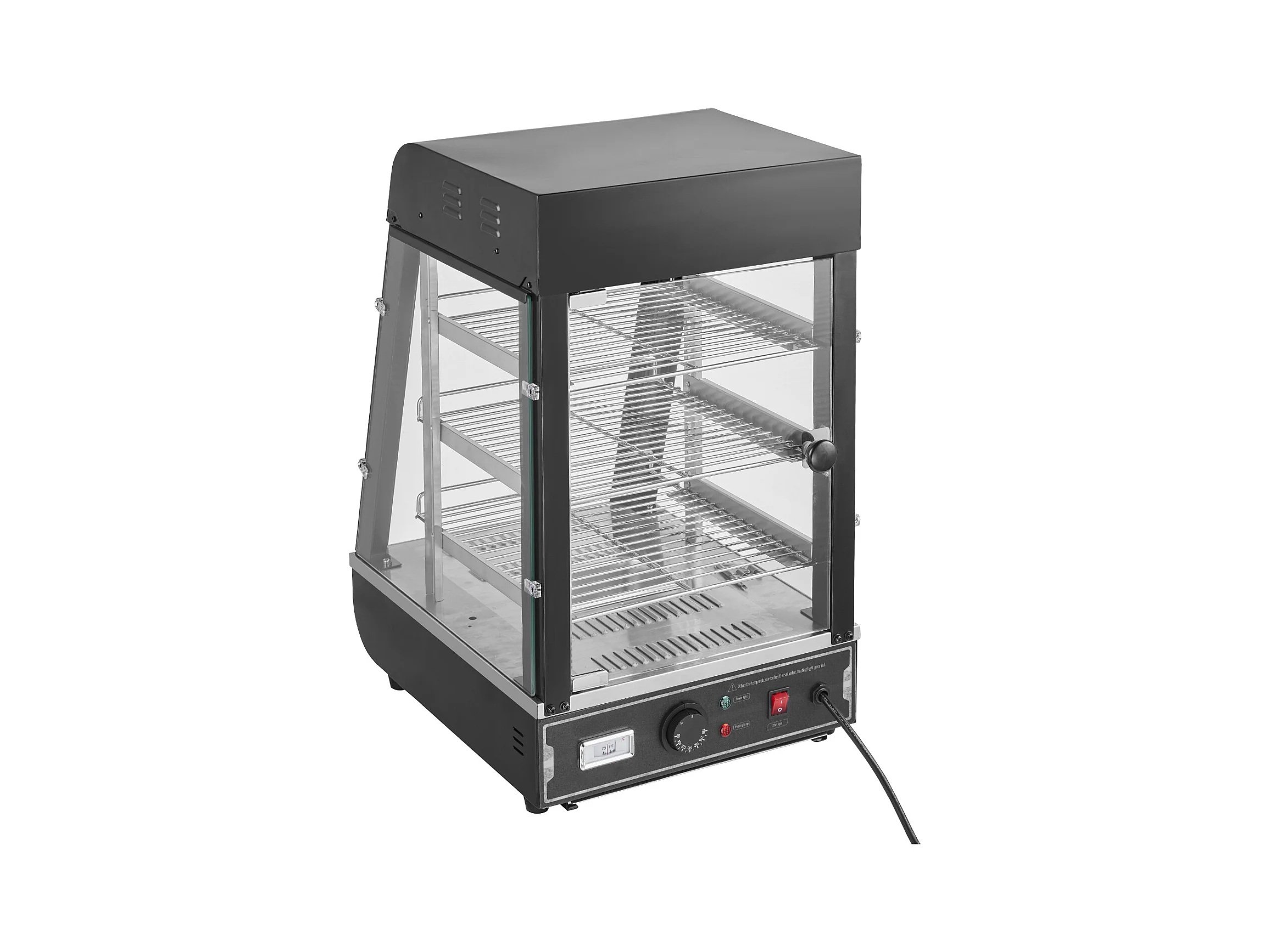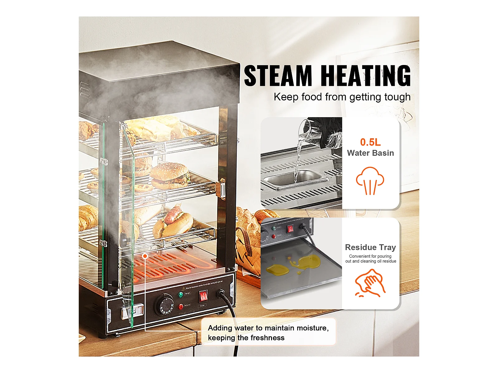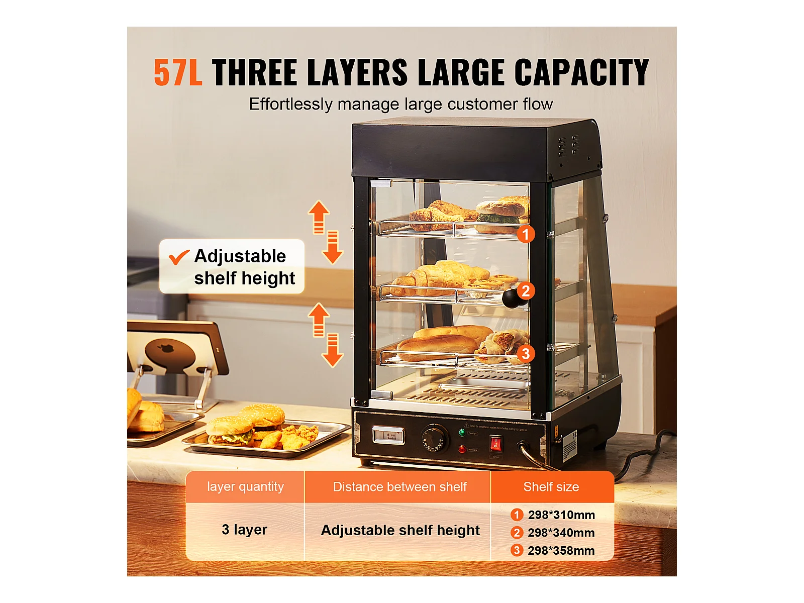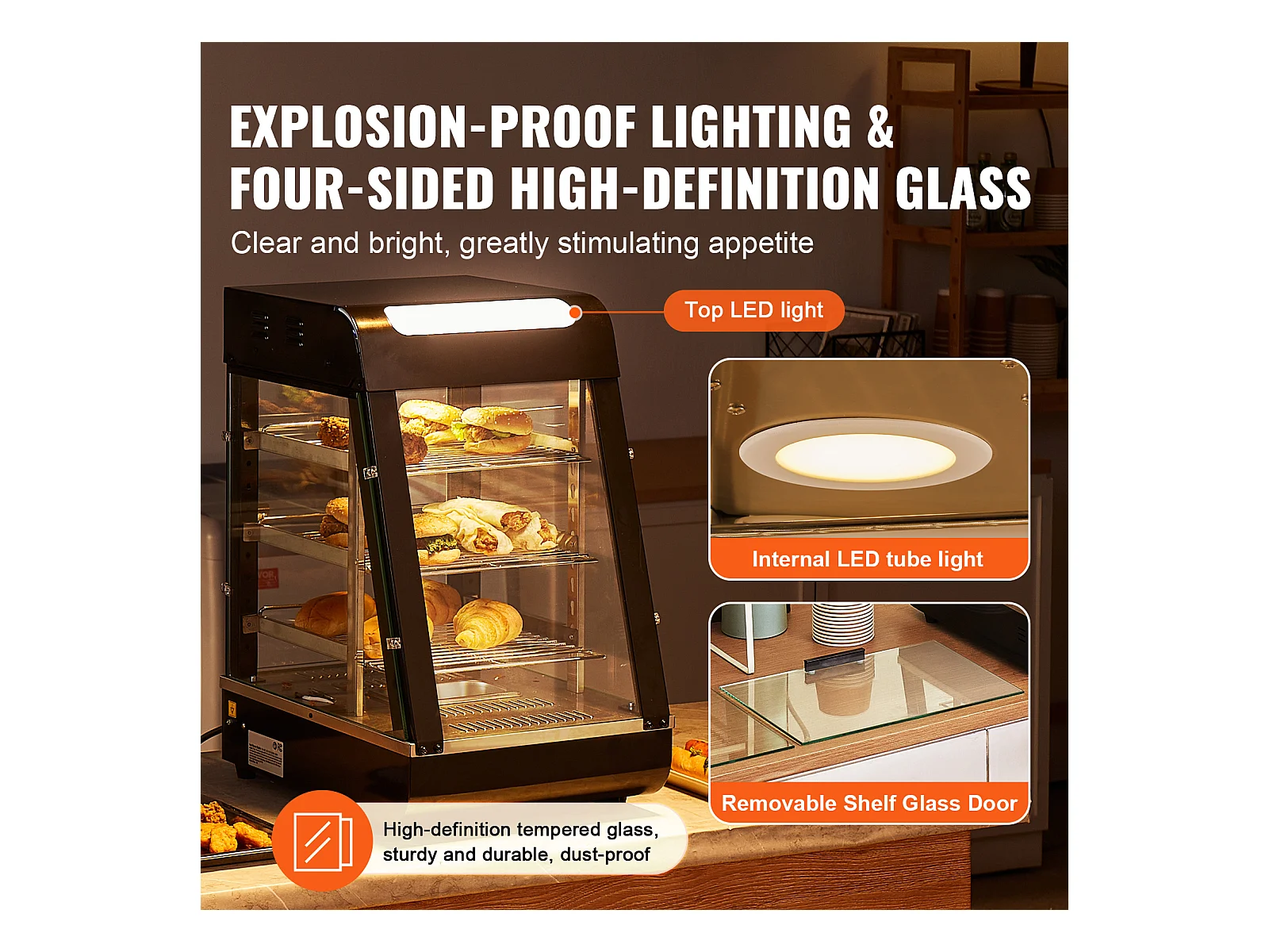 Vitrine Chauffante SucceBuy, Présentoir de Comptoir Chauffant Commercial à 3 niveaux avec Éclairage pour Pizza