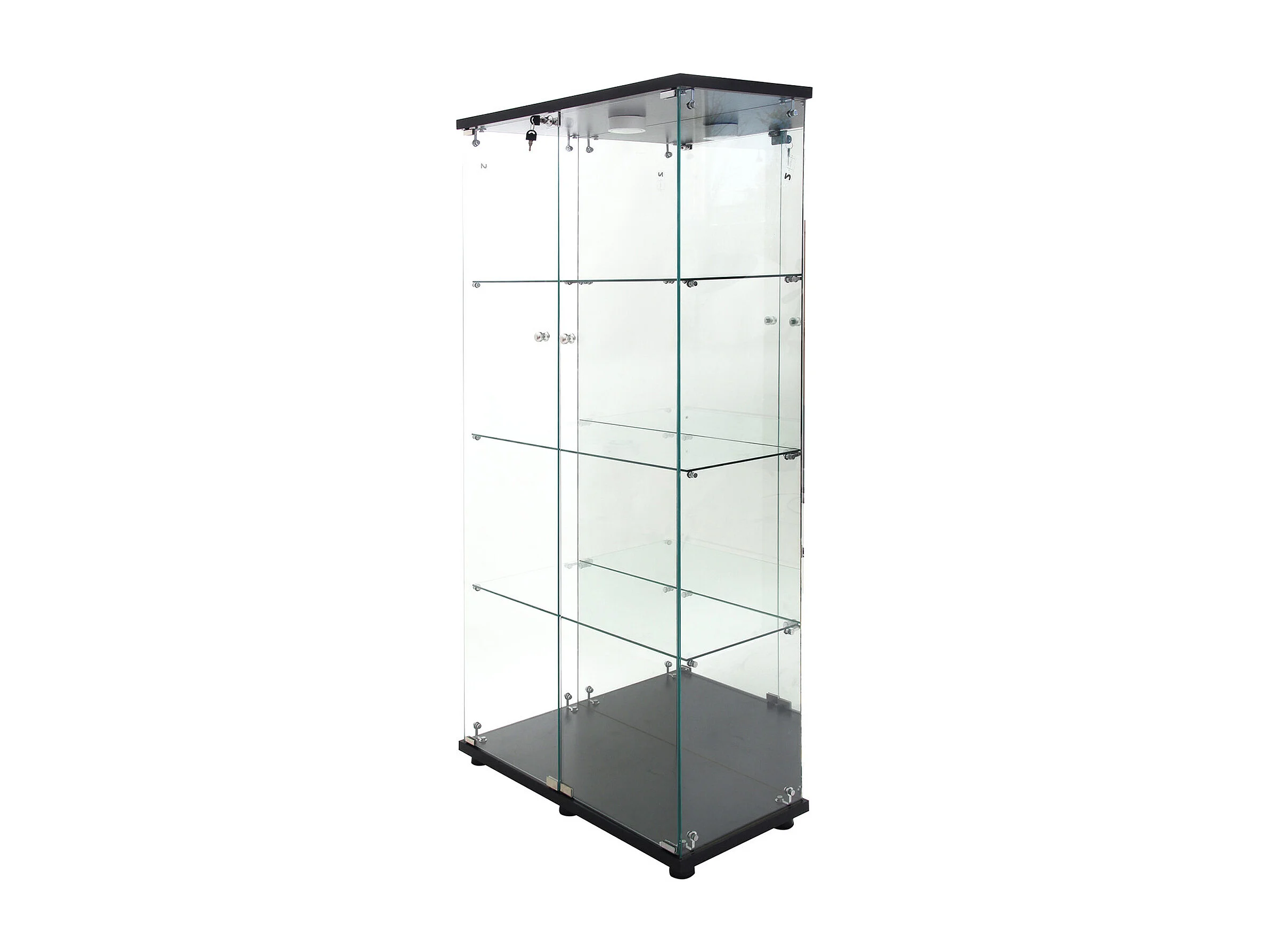 Vitrine en verre 163.9 x 36.49 x 80.49 cm,avec étagères et éclairage LED, armoire de curiosités à double porte