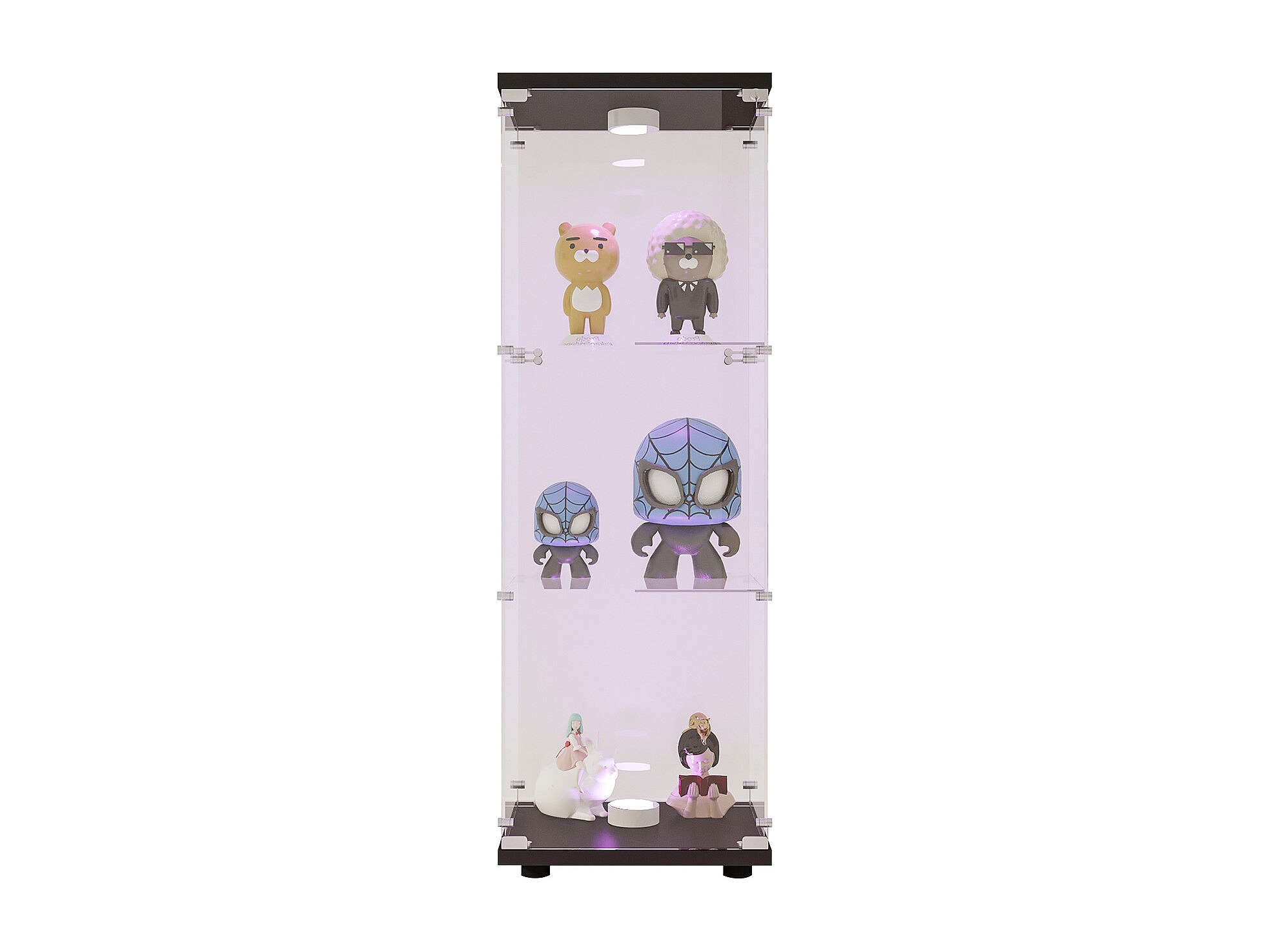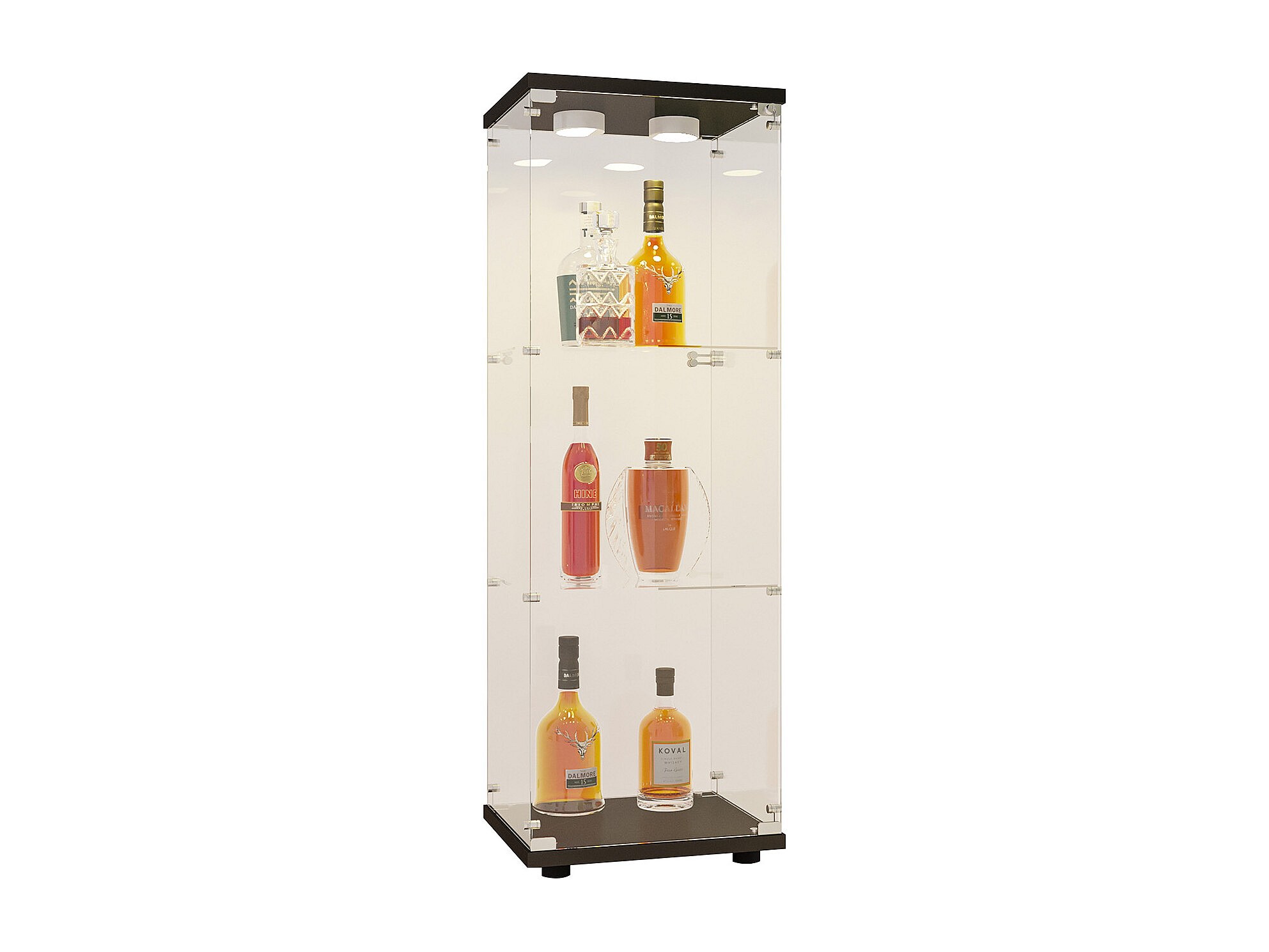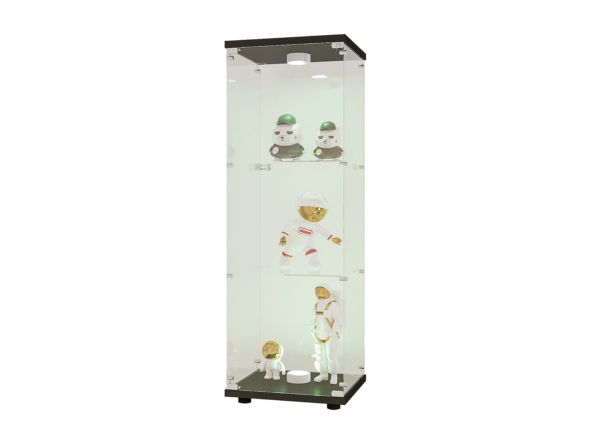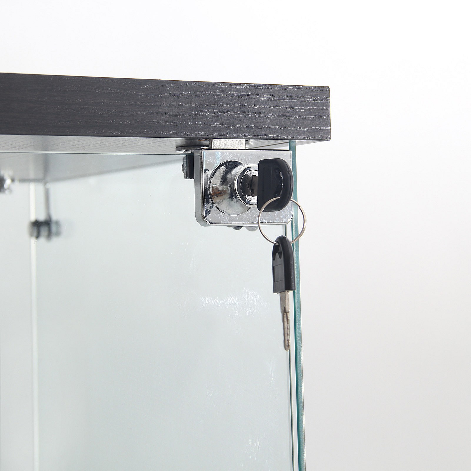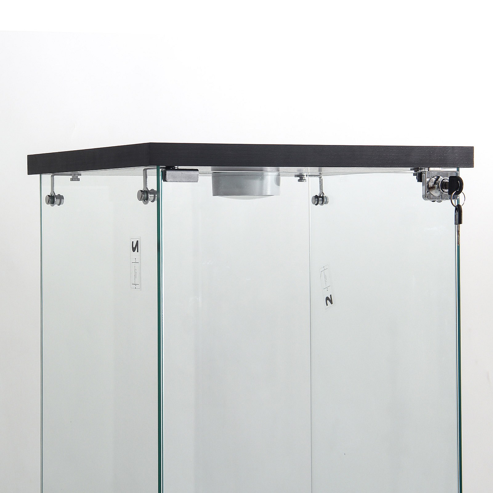 Vitrine en Verre - 3 étagères - Avec LEDs, lumière et serrure, noir