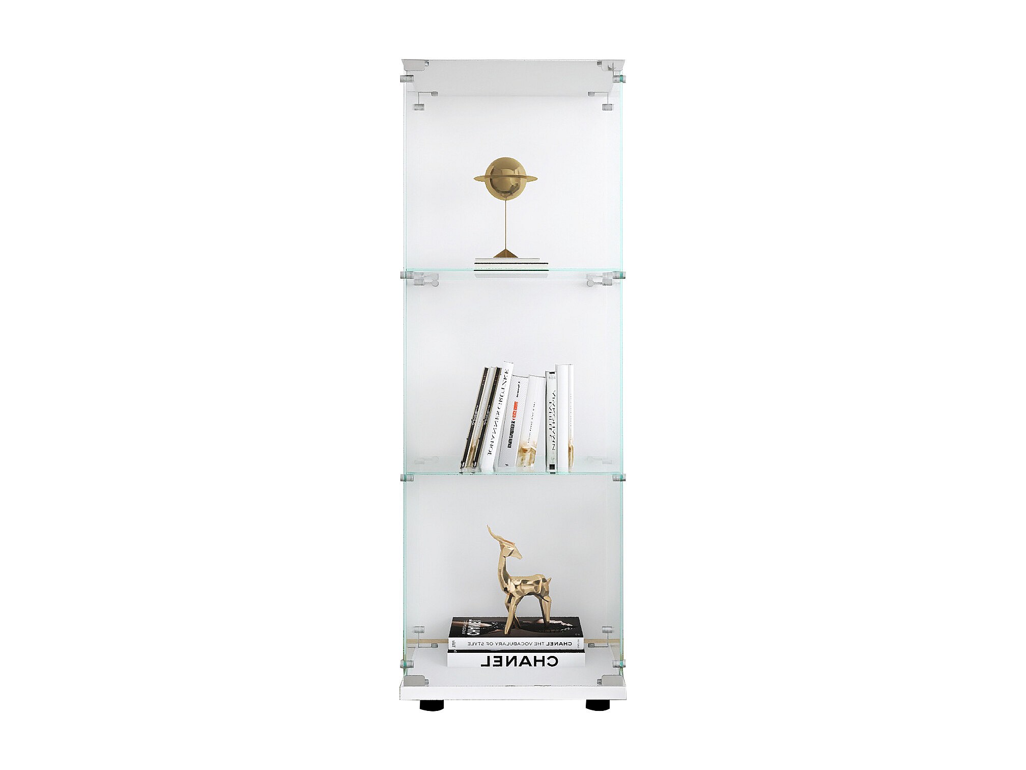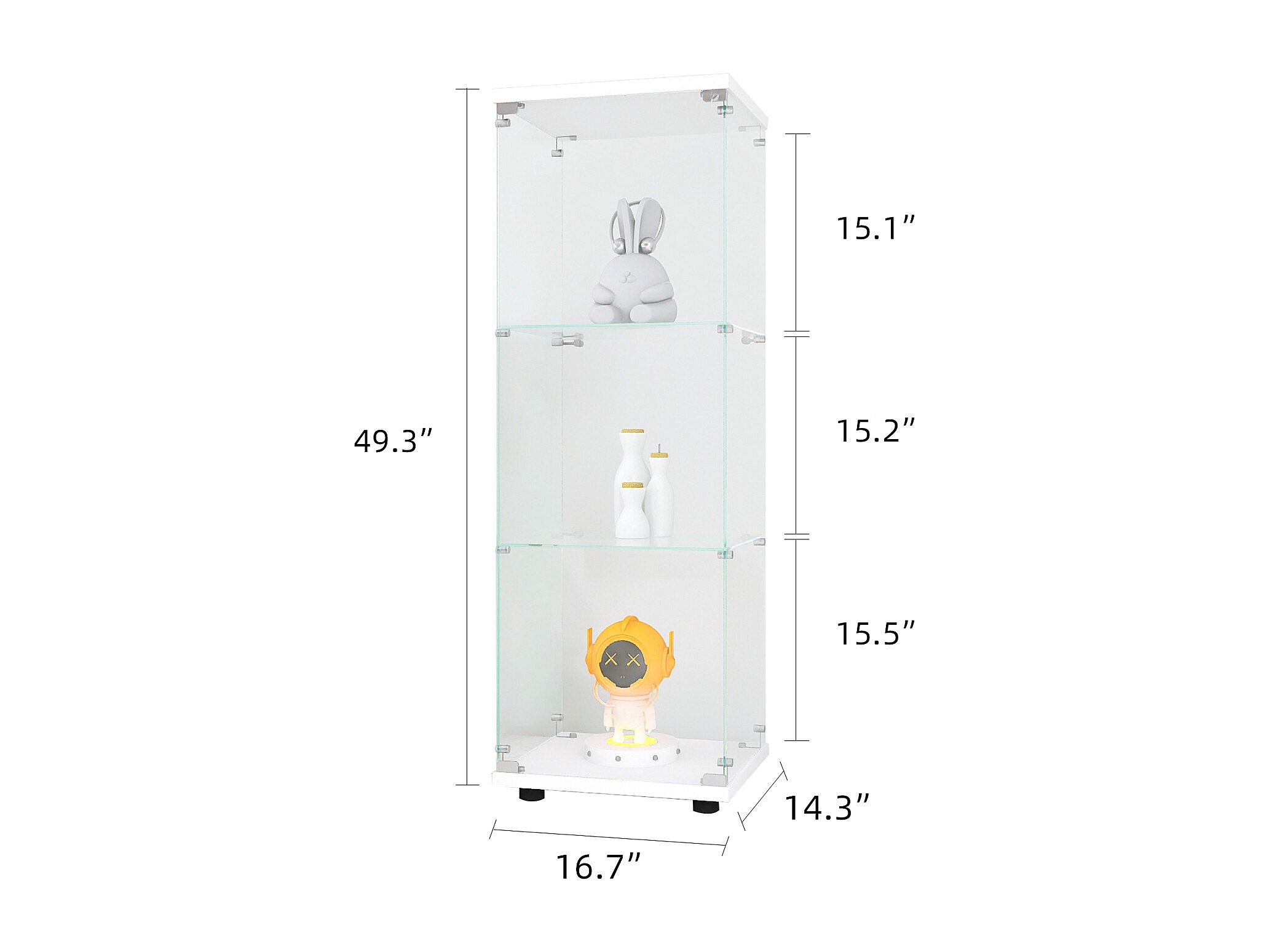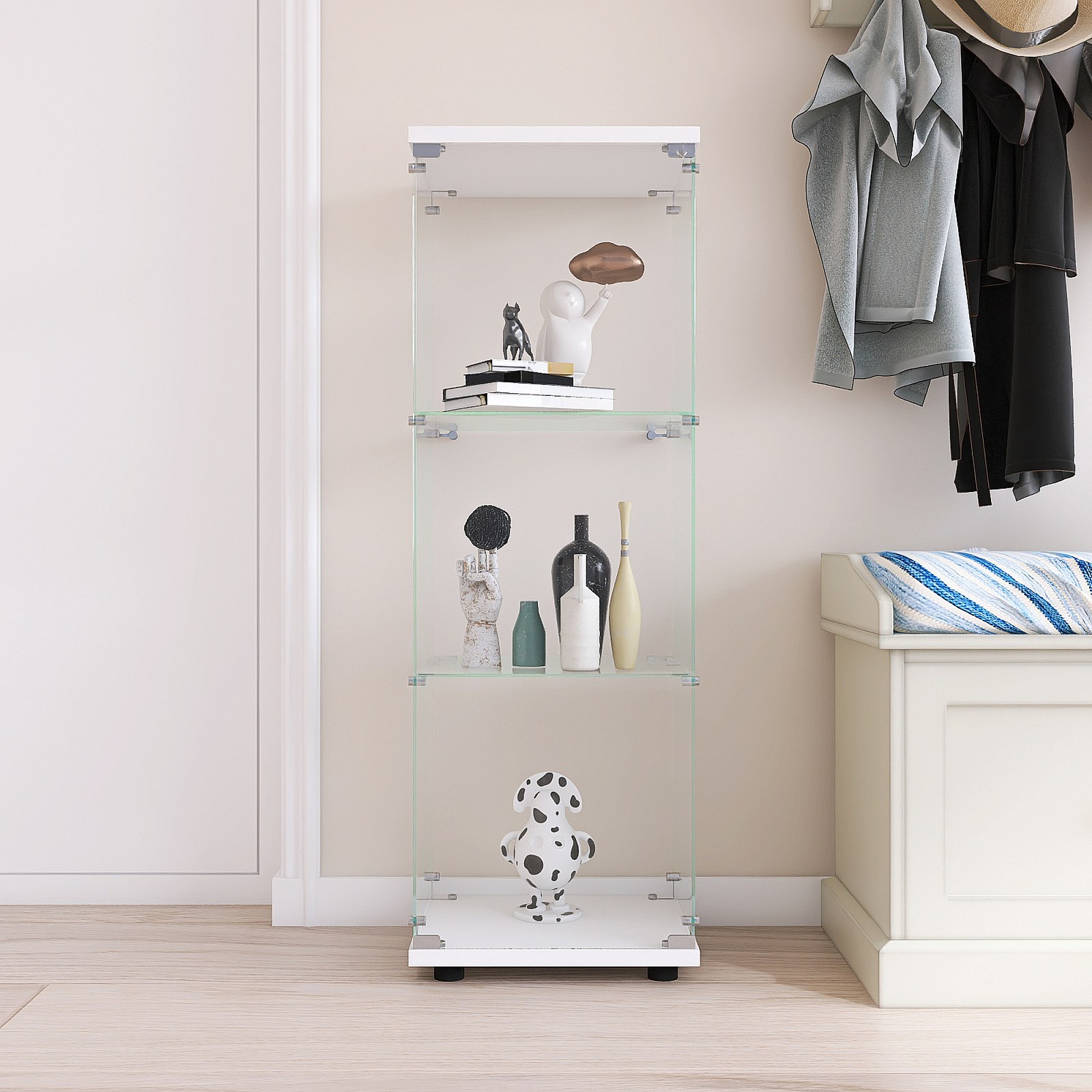 Vitrine en Verre - 3 étagères en Verre - avec Portes et Serrure - Blanc