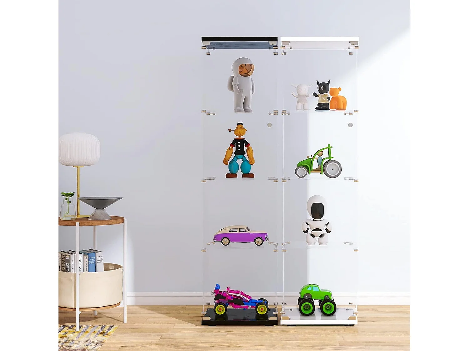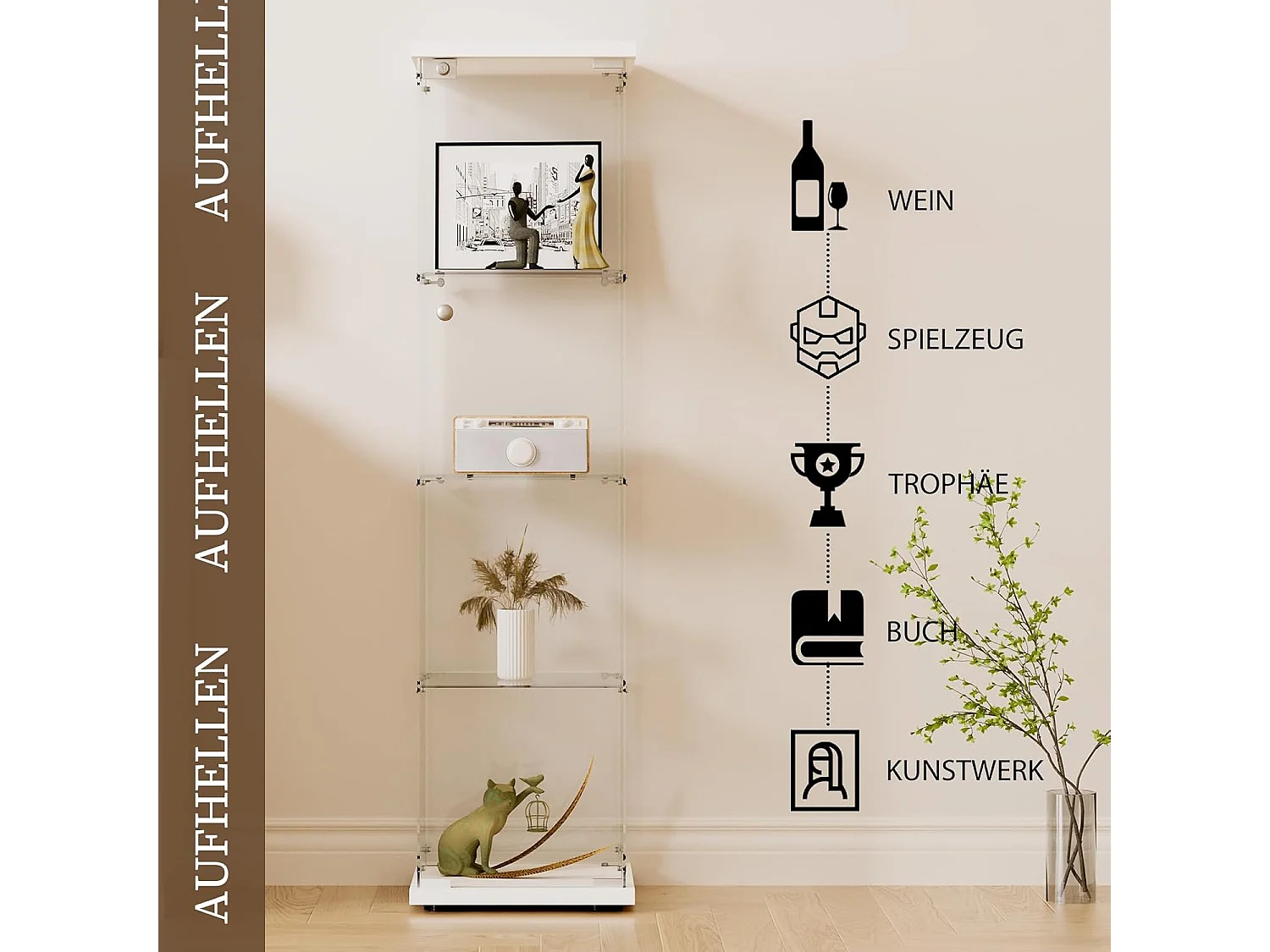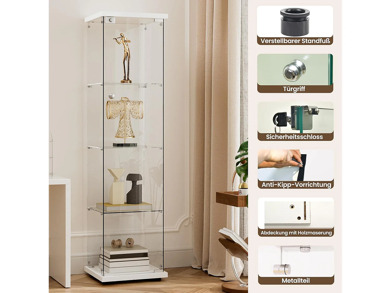 Vitrine en verre 4 étagères, 1 porte, 164x42.5x36.5 cm, meuble pour collection, blanc, transparent