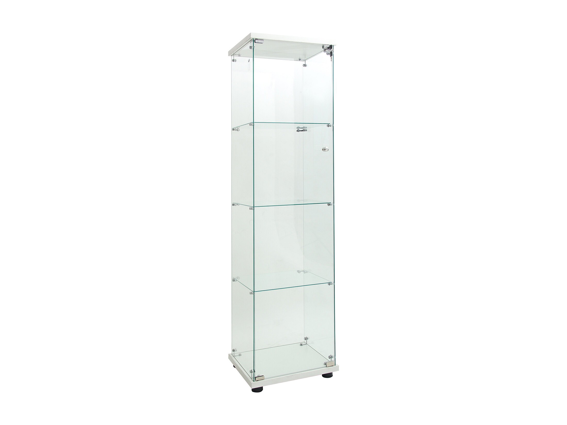 Vitrine en verre 4 étagères, LED, 1 porte, 164x42x36 cm, meuble pour collection, blanc, transparent
