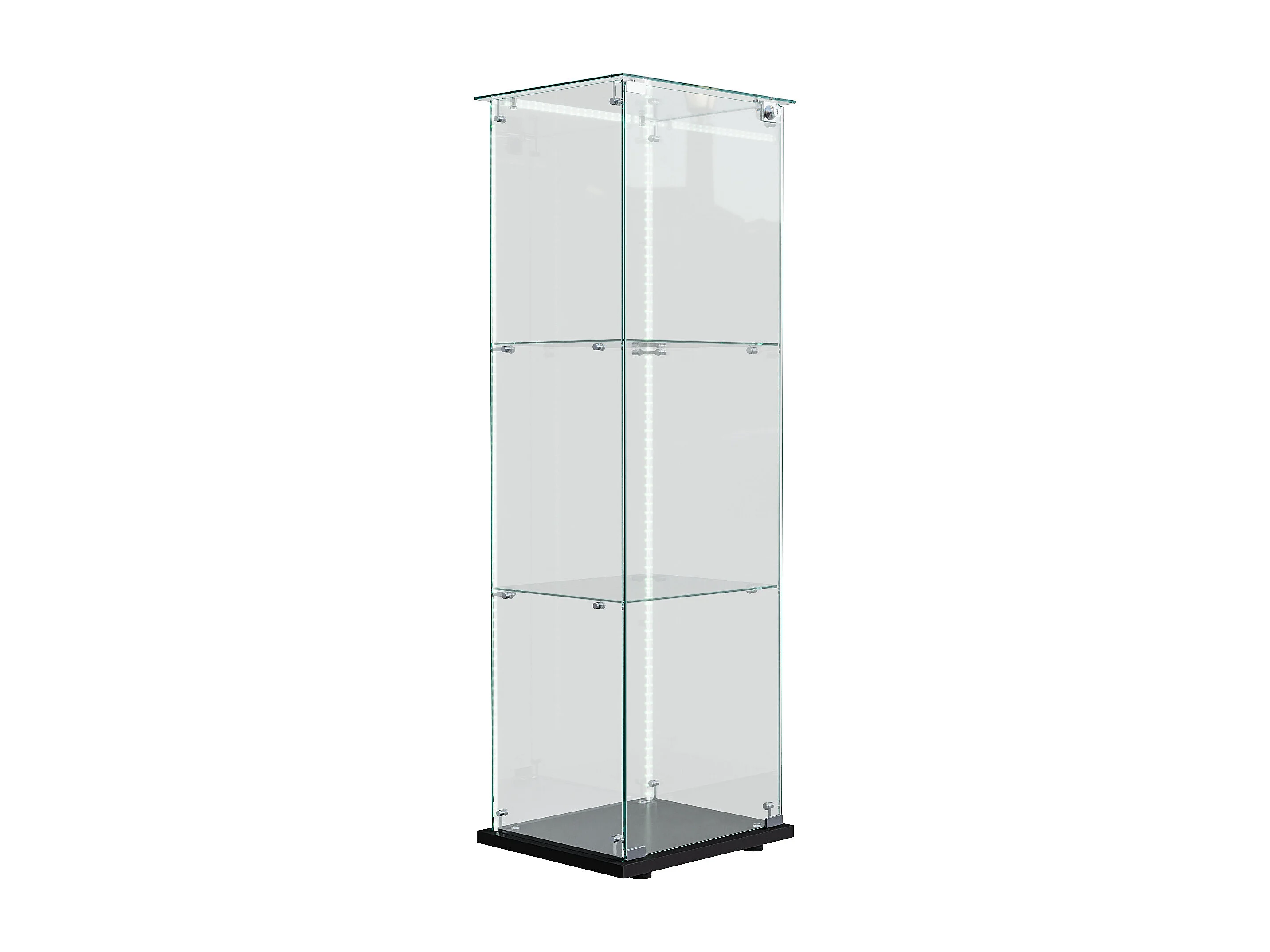 Vitrine en verre à 3 étagères avec éclairage LED - 123.3 x 39.8 x 35 cm - Vitrine étroite - noir