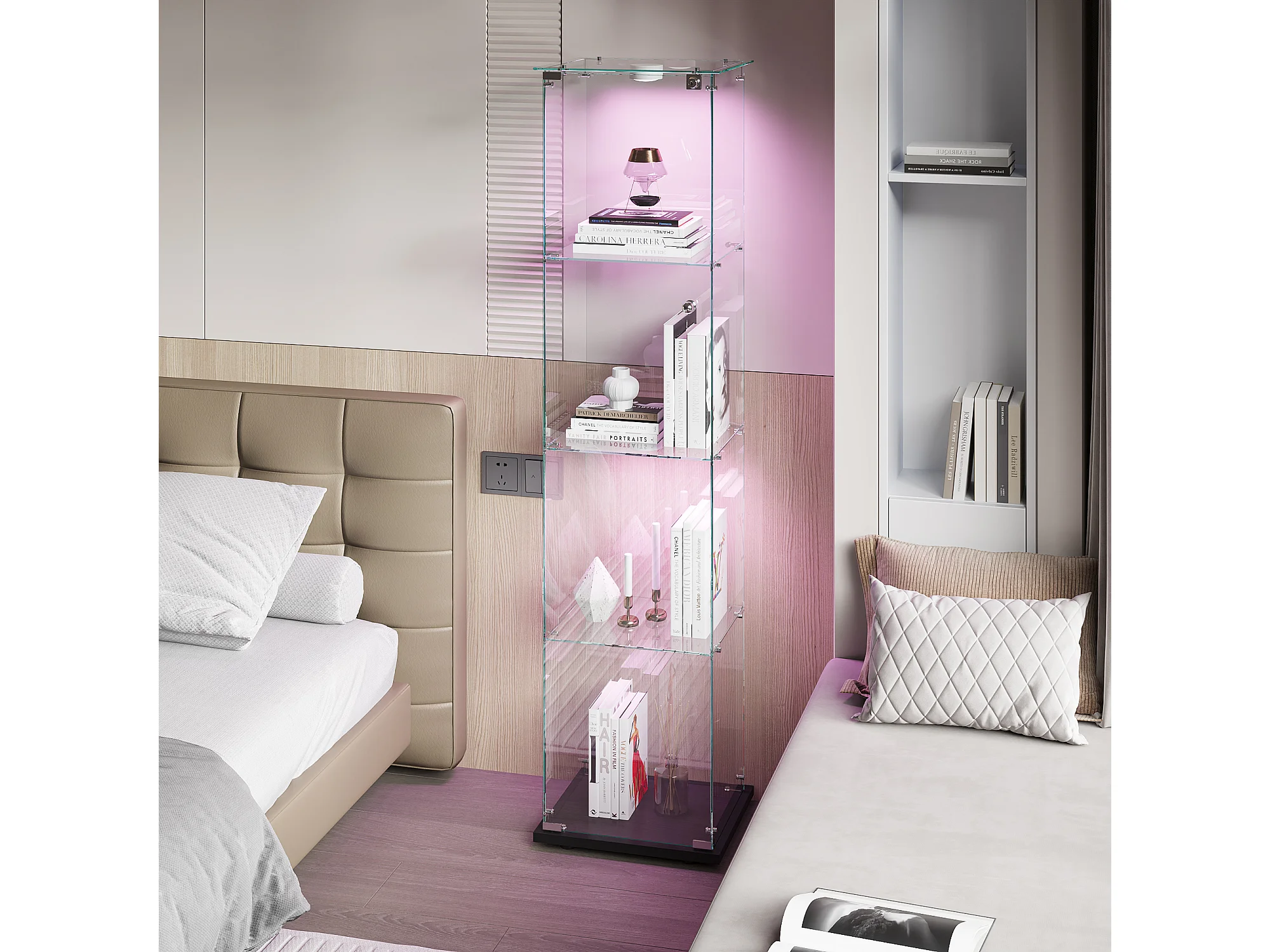 Vitrine en verre à 4 étagères avec éclairage tactile - 163 x 39.8 x 35 cm - Vitrine étroite - Noir