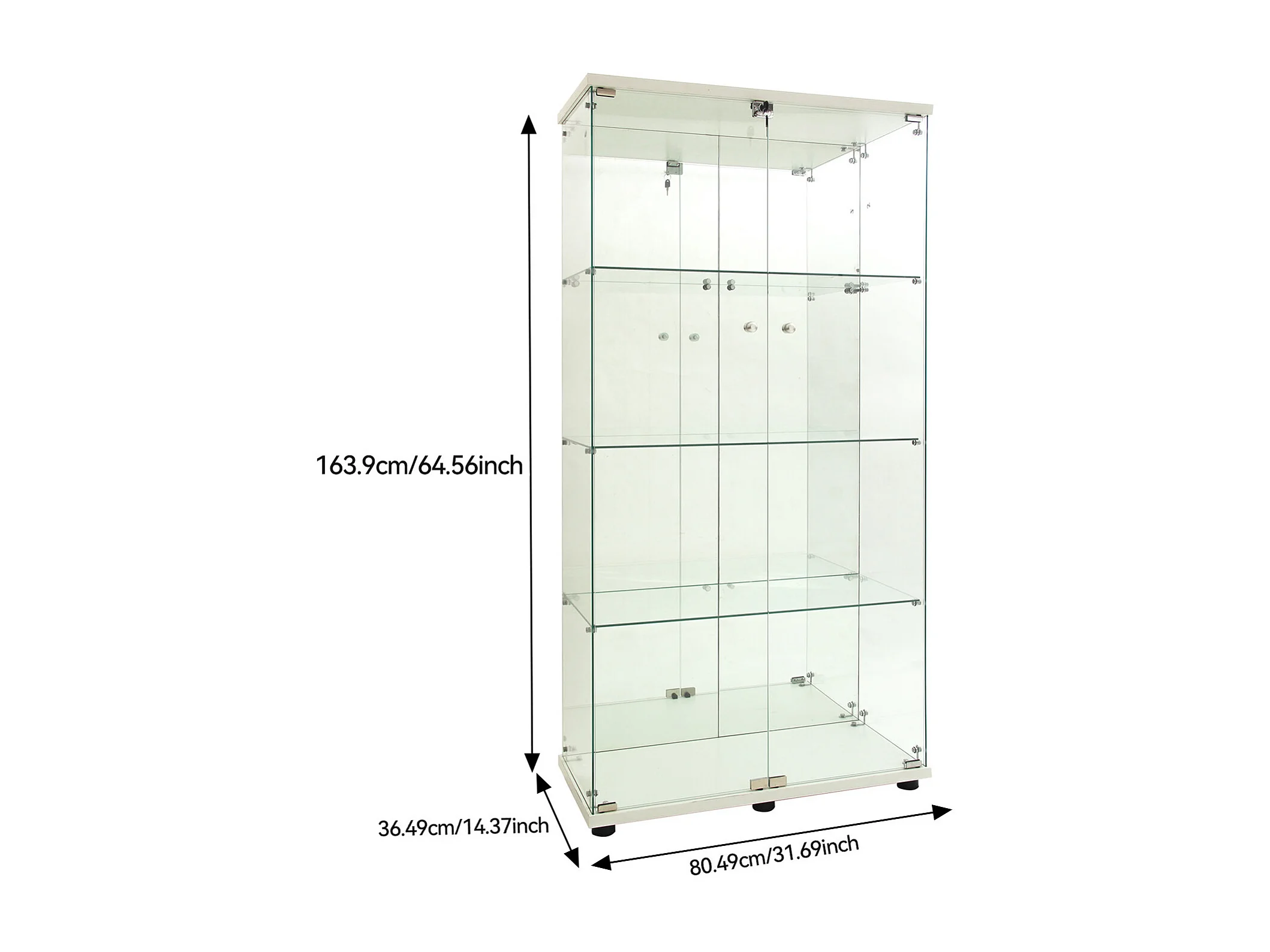Vitrine en verre à 4 niveaux avec éclairage LED, double porte avec serrures,80,5 x 36,5 x 164 cm
