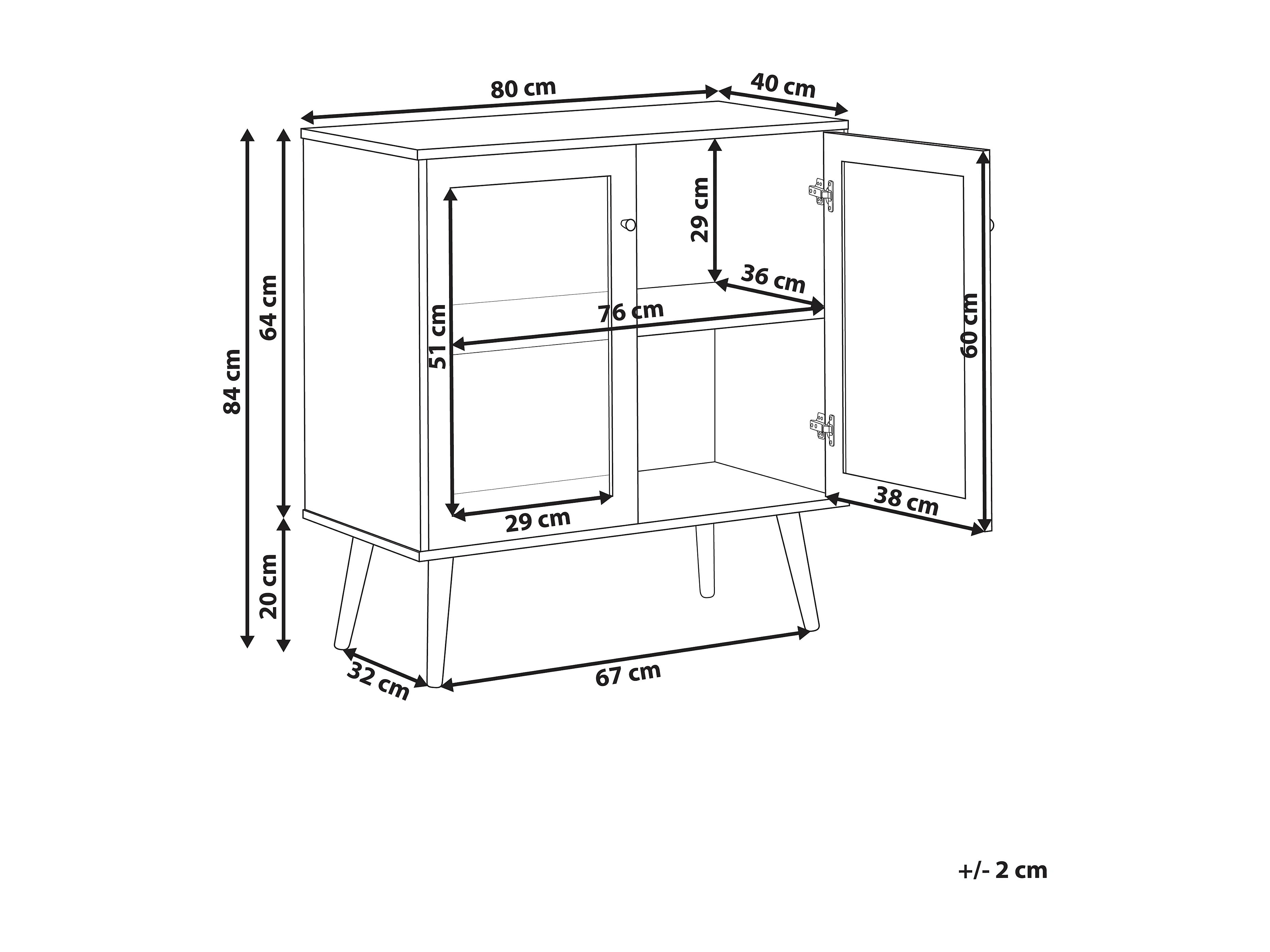 Buffet avec vitrine en verre ALBANY 80 cm Marron clair