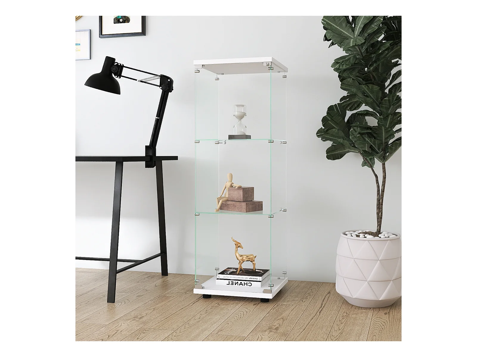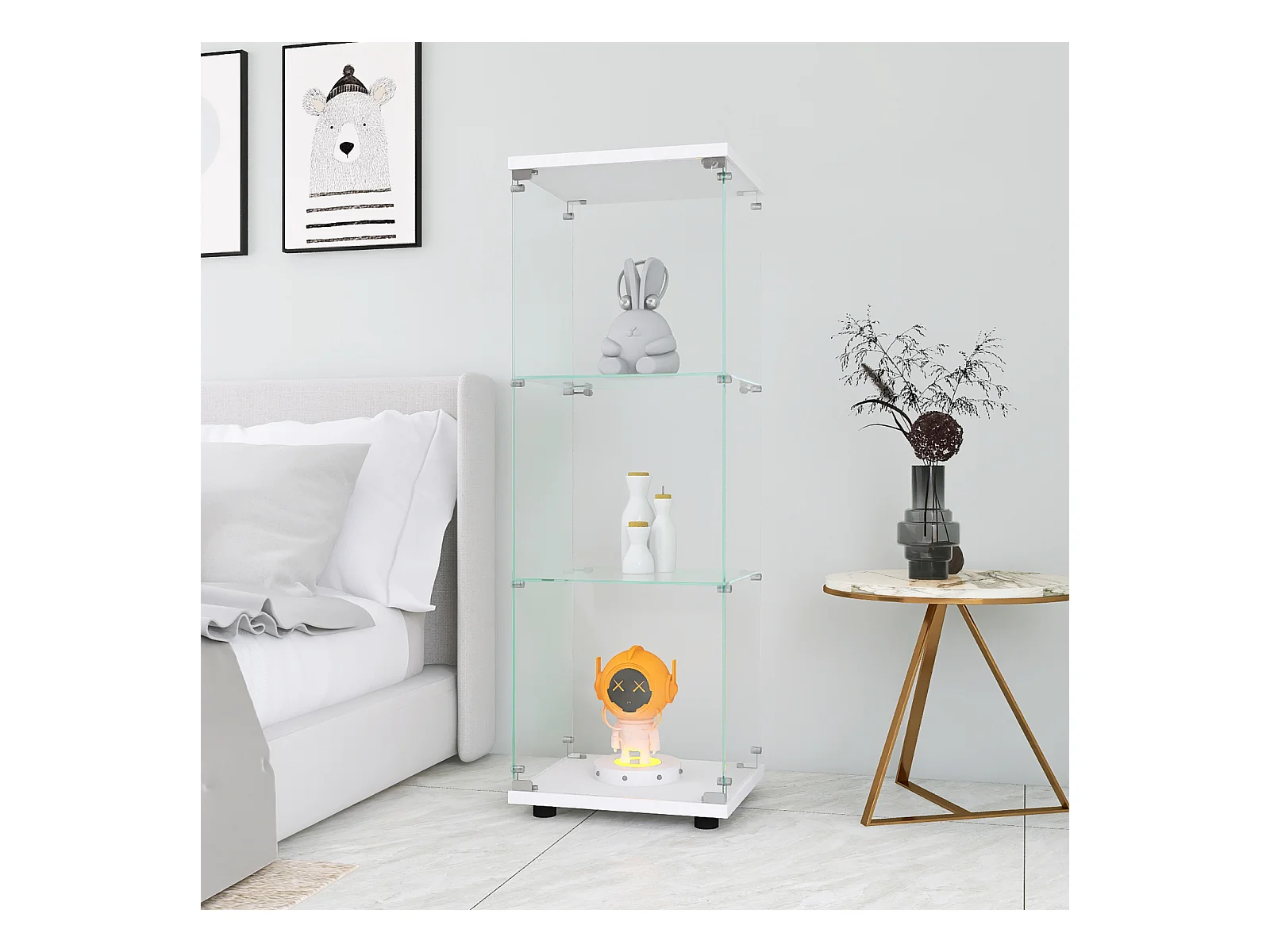 Vitrine en verre avec 3 étagères 127 x 45 x 14 cm vitrine en verre debout, vitrine pour salon, blanc