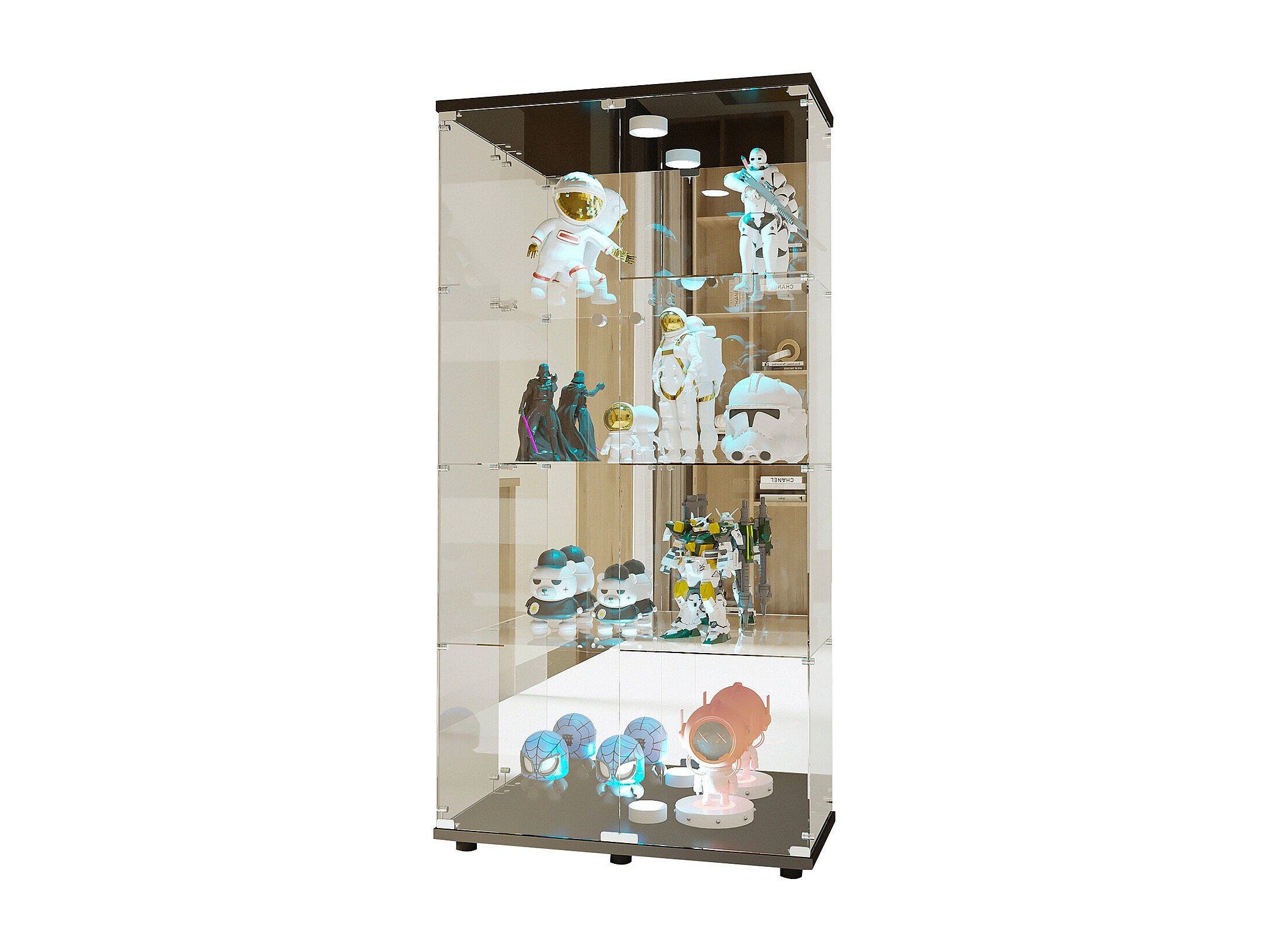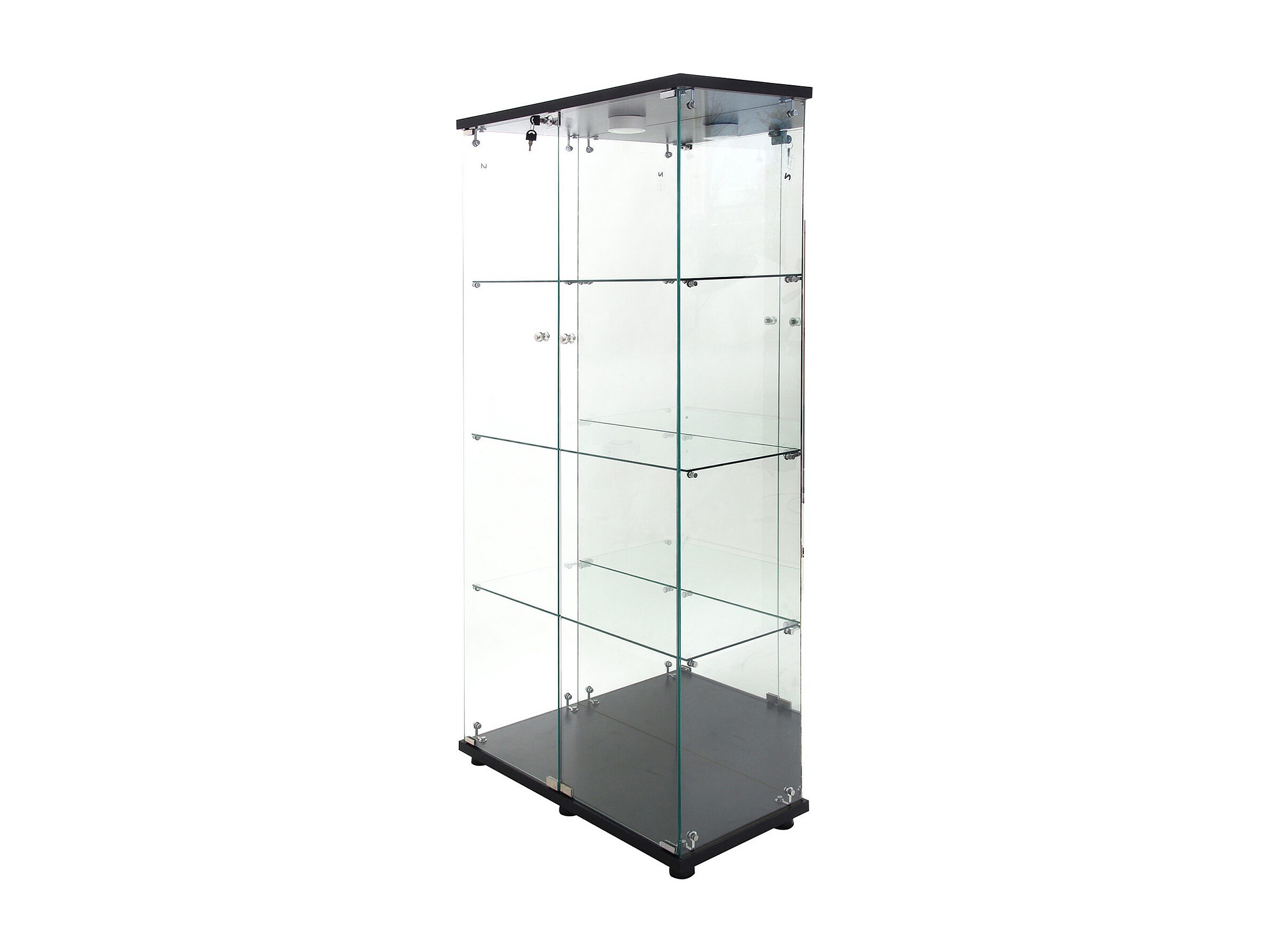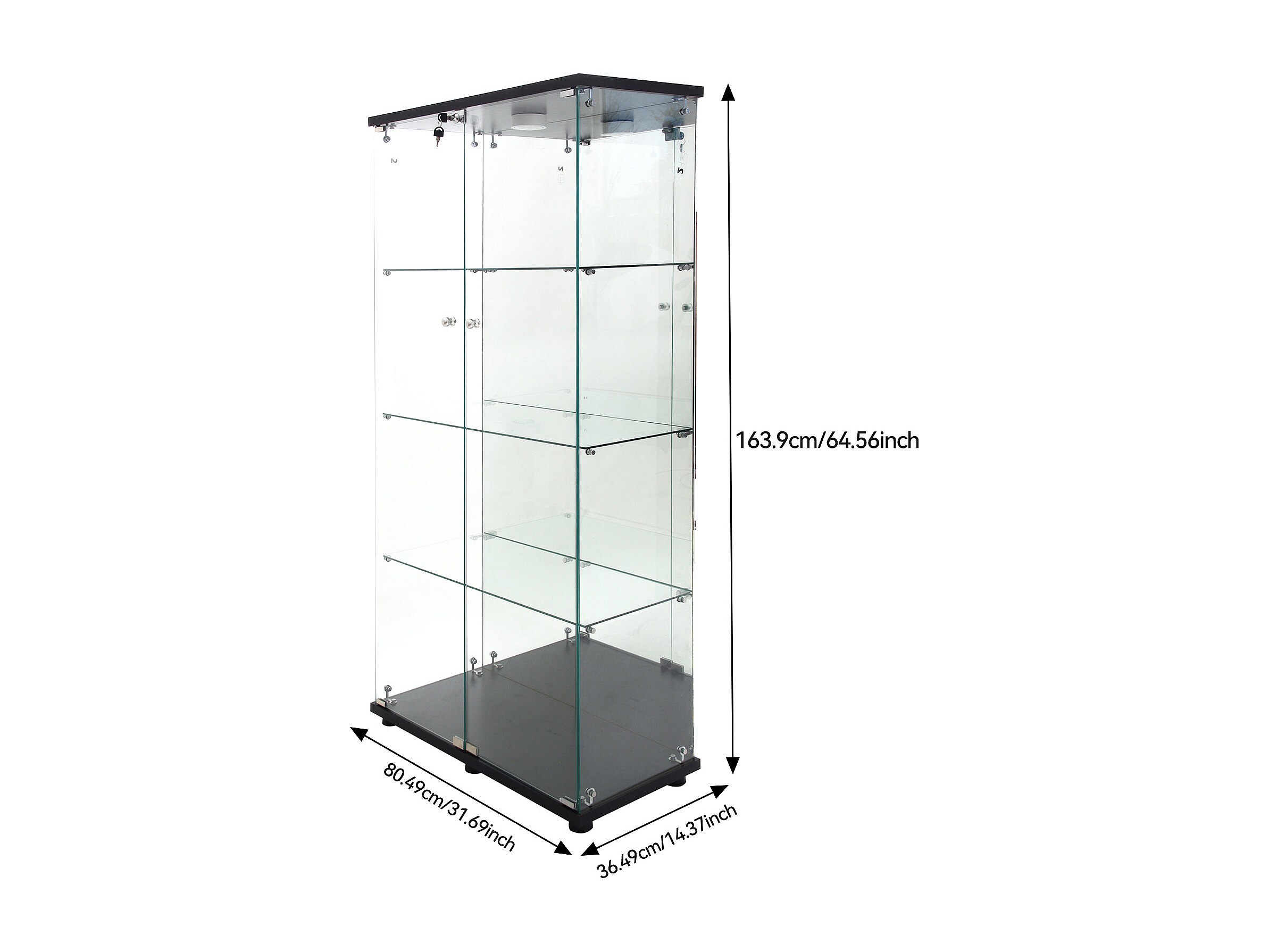 Vitrine en verre avec 4 étagères, vitrine à 2 portes avec lumière et serrure, noir