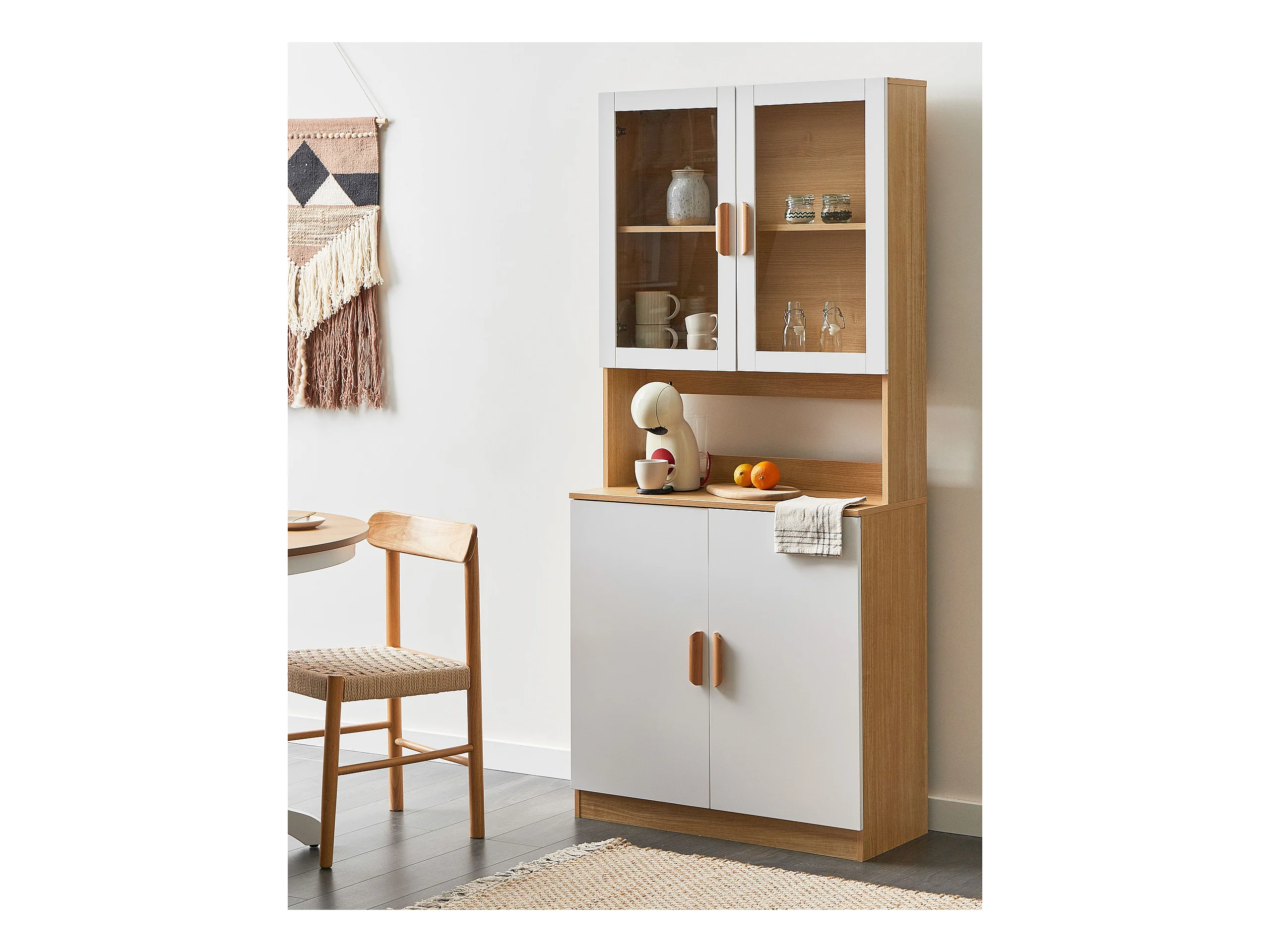 Buffet avec vitrine en verre MIRAM 80 cm Blanc