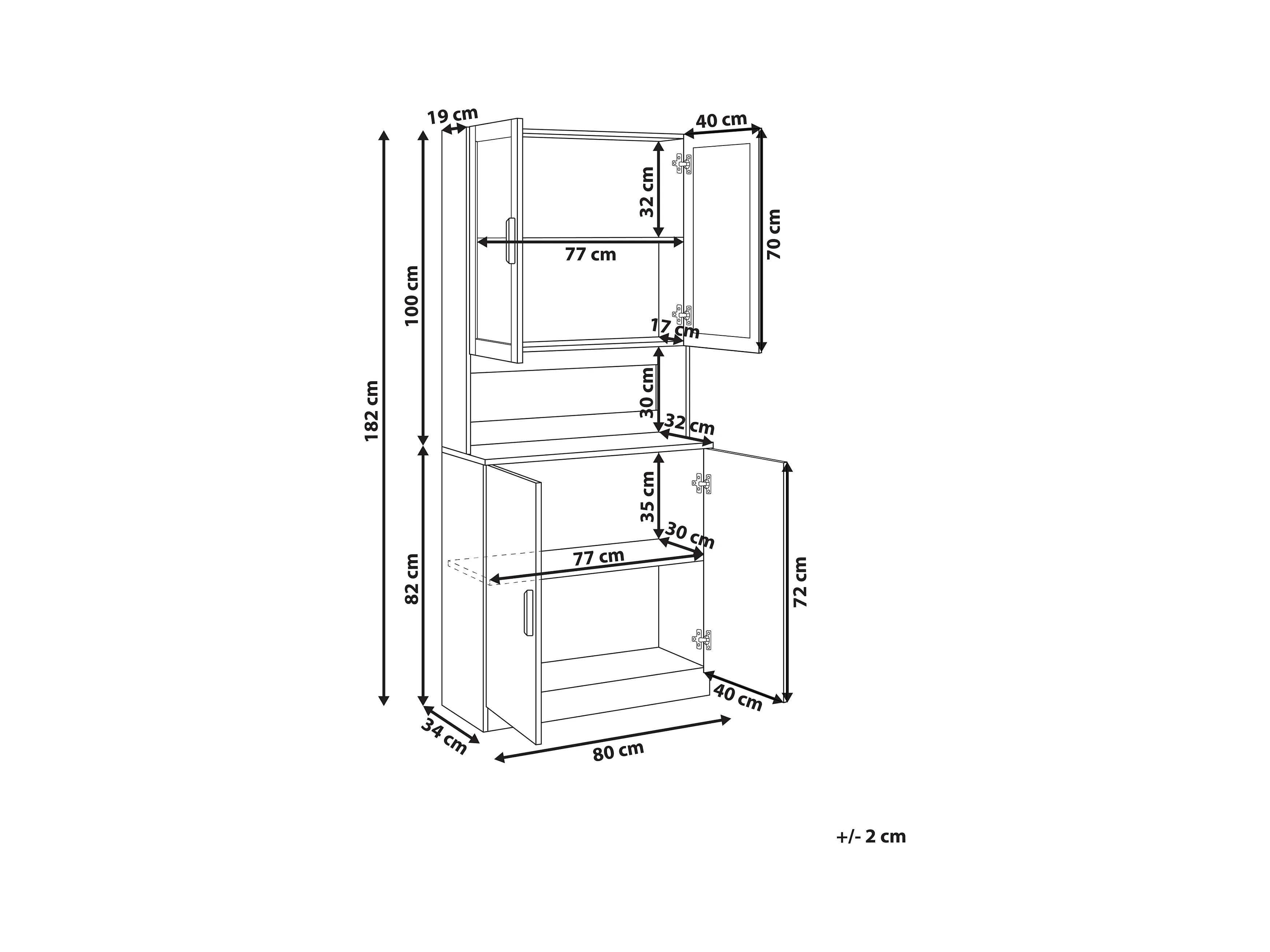 Buffet avec vitrine en verre Avec étagère INLET 80 cm Blanc