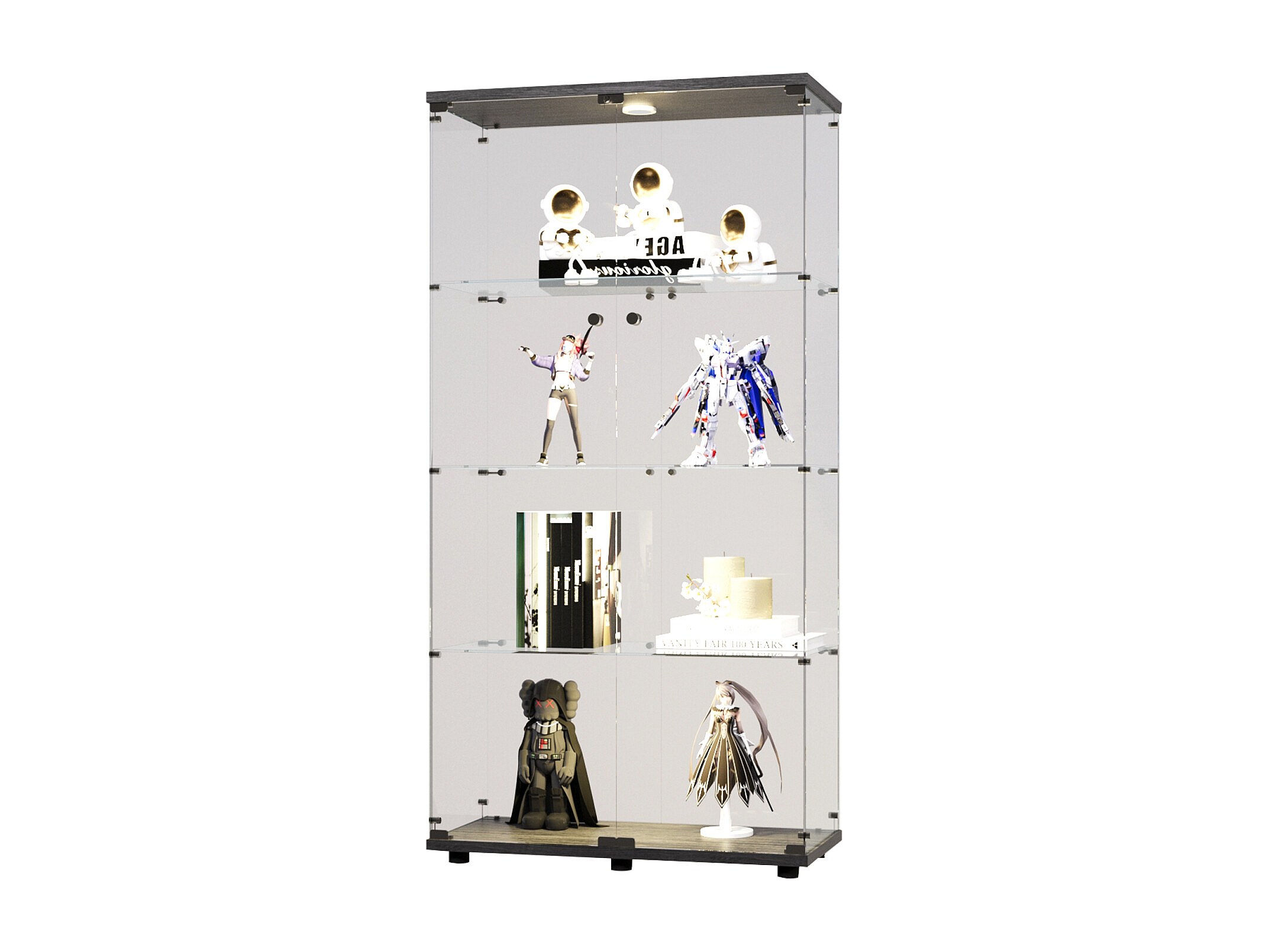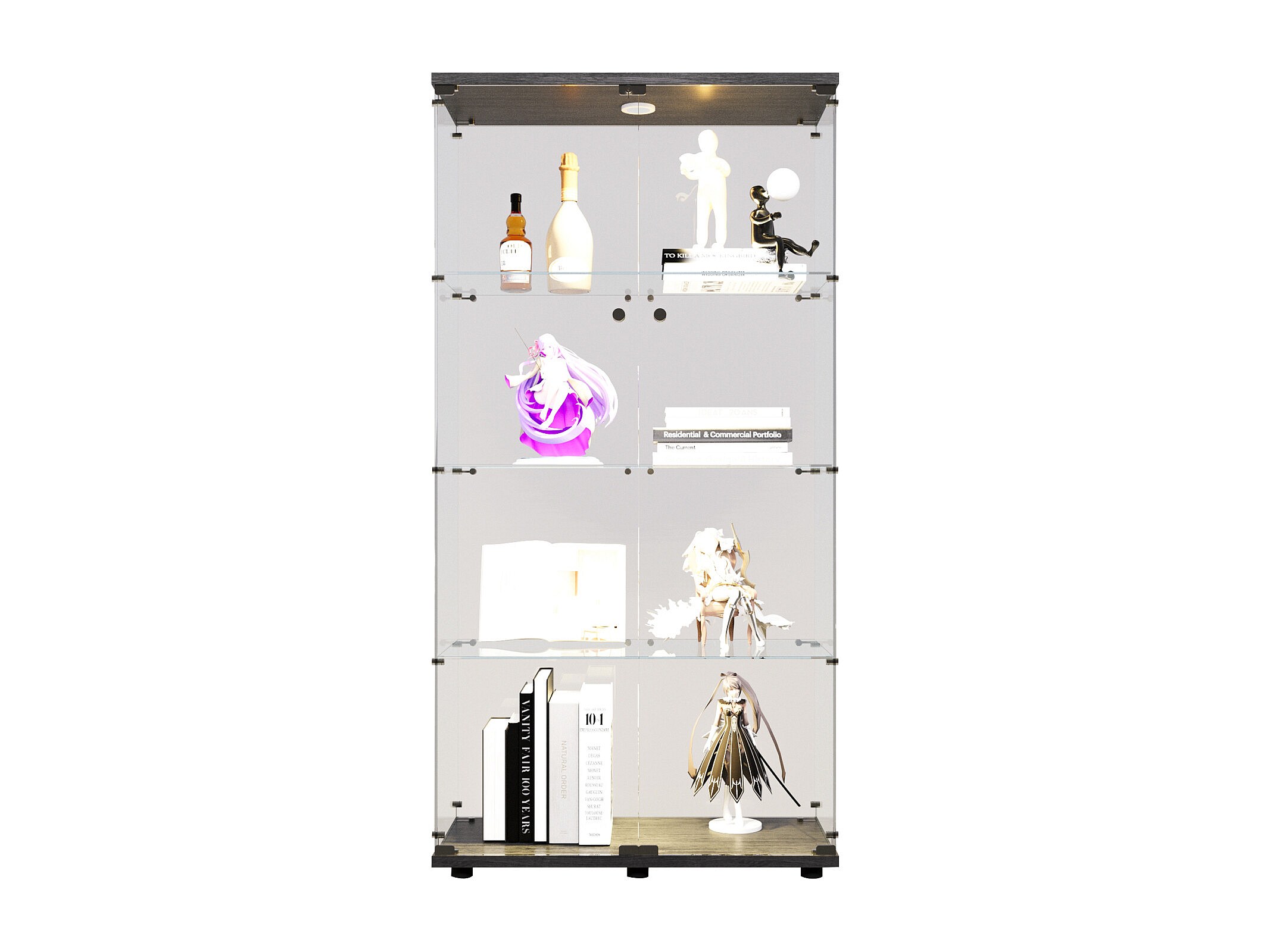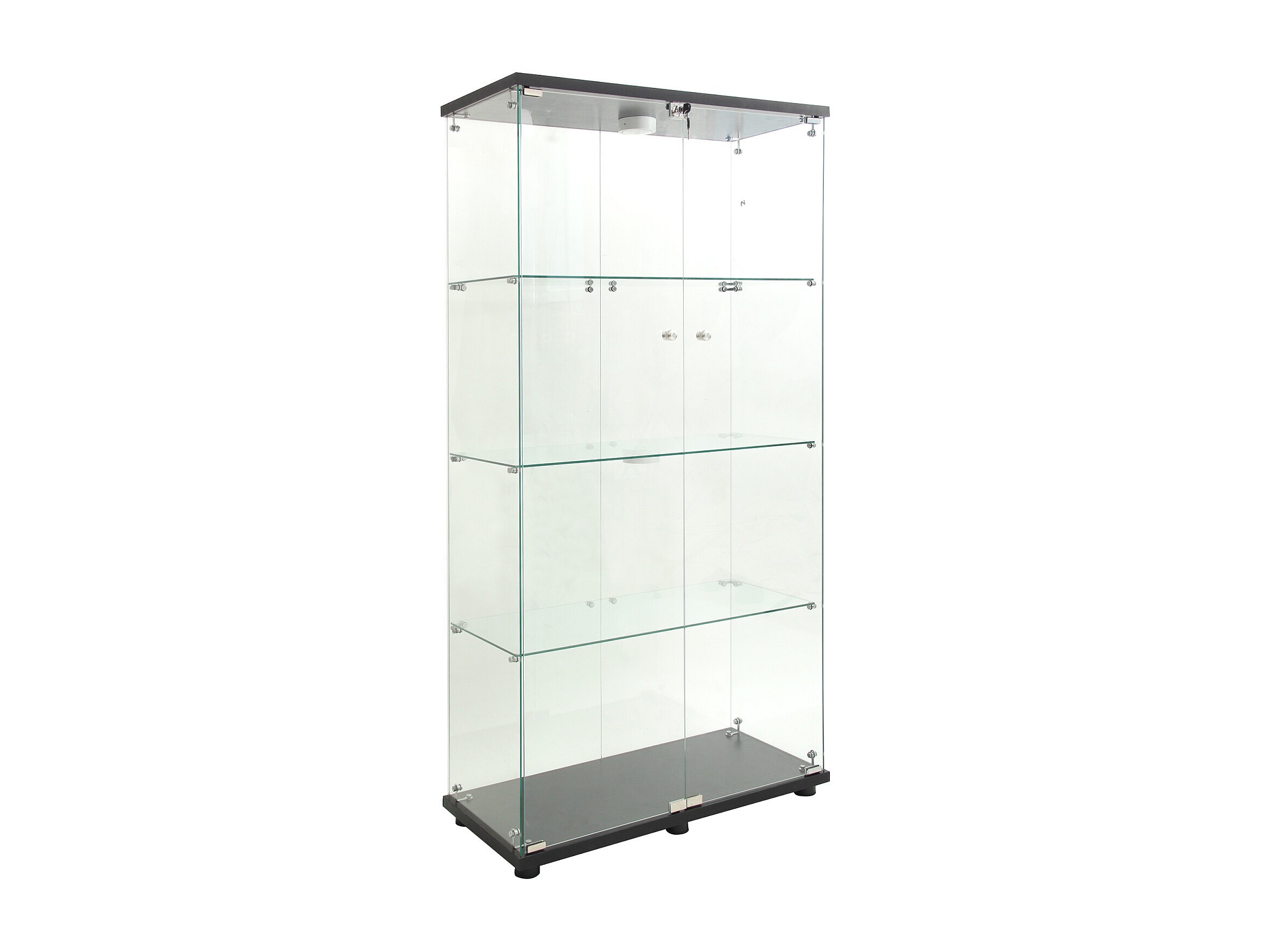 Vitrine en verre sur pied, LED, 2 portes avec serrure, 4 compartiments, pour collections et déco