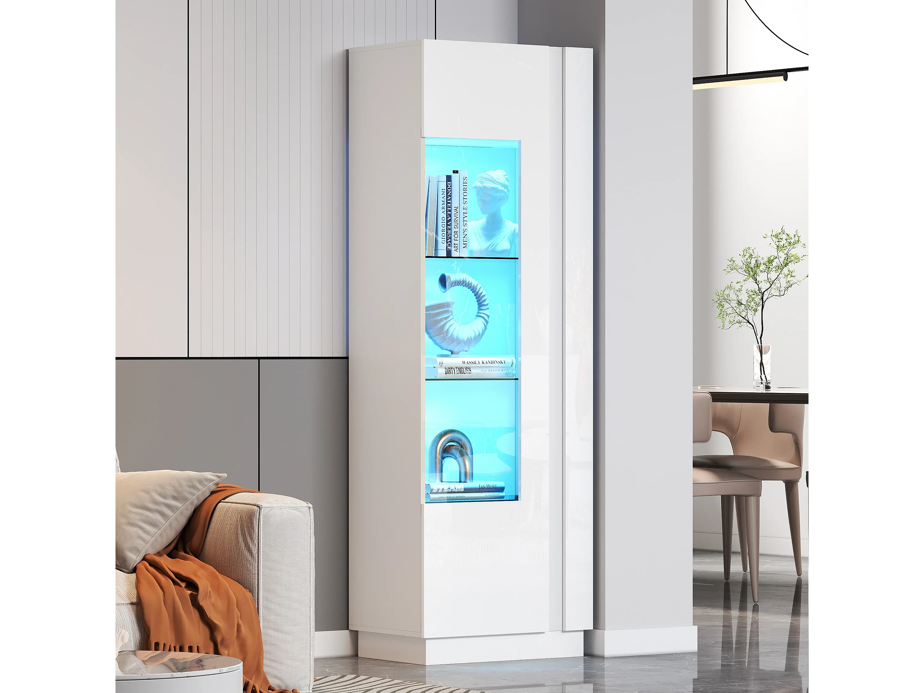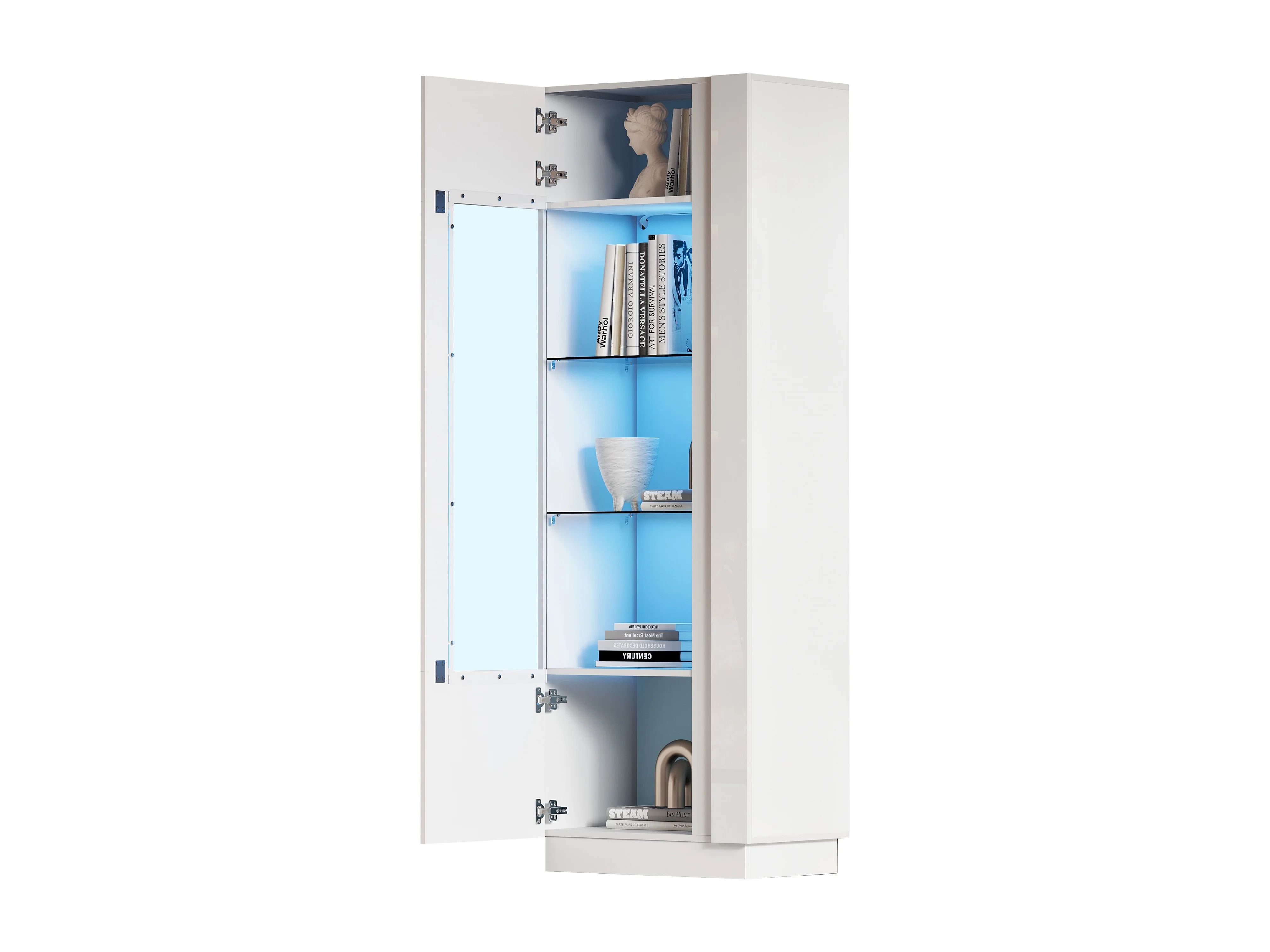 Vitrine haute blanc - Vitrine avec éclairage LED et 1 porte - étagères en verre