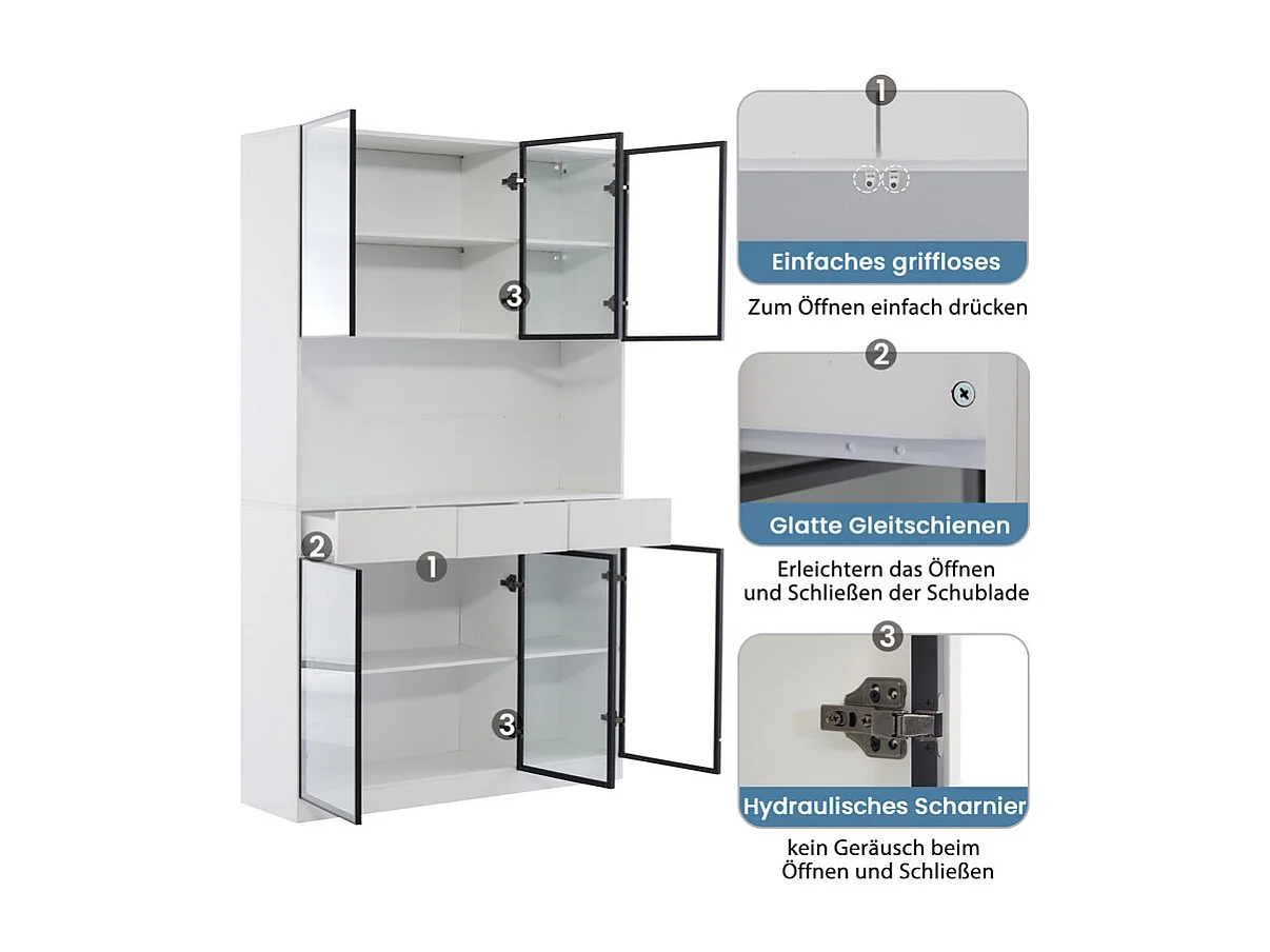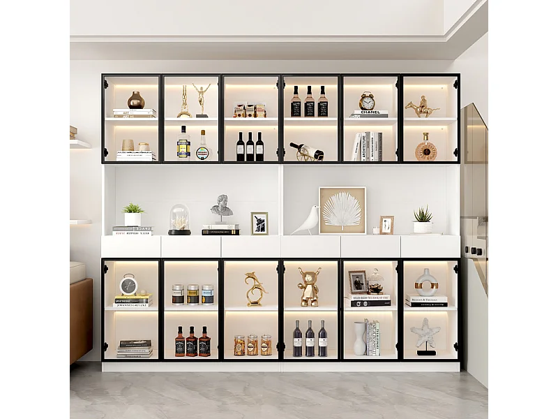 Vitrine Murale - 12 portes en verre et 6 tiroirs - avec RGB LED - Panneau de particule - 240x36x200cm