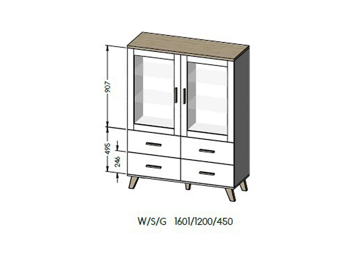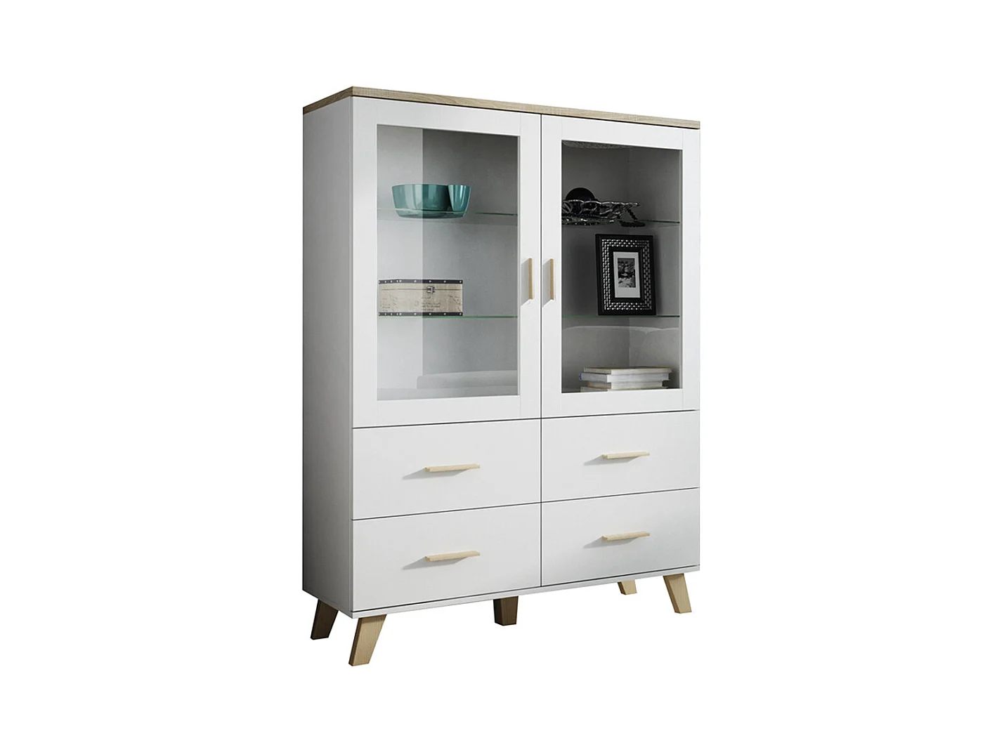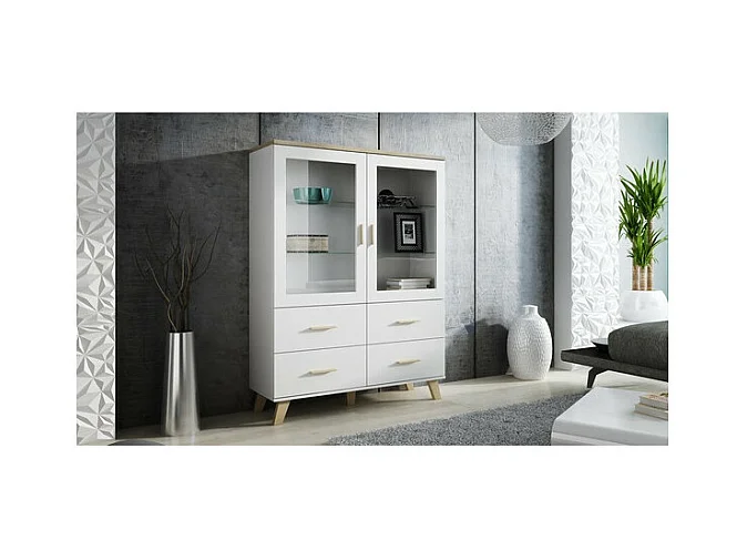 Vitrine scandinave décor chêne et blanc mat 120x160cm Colin