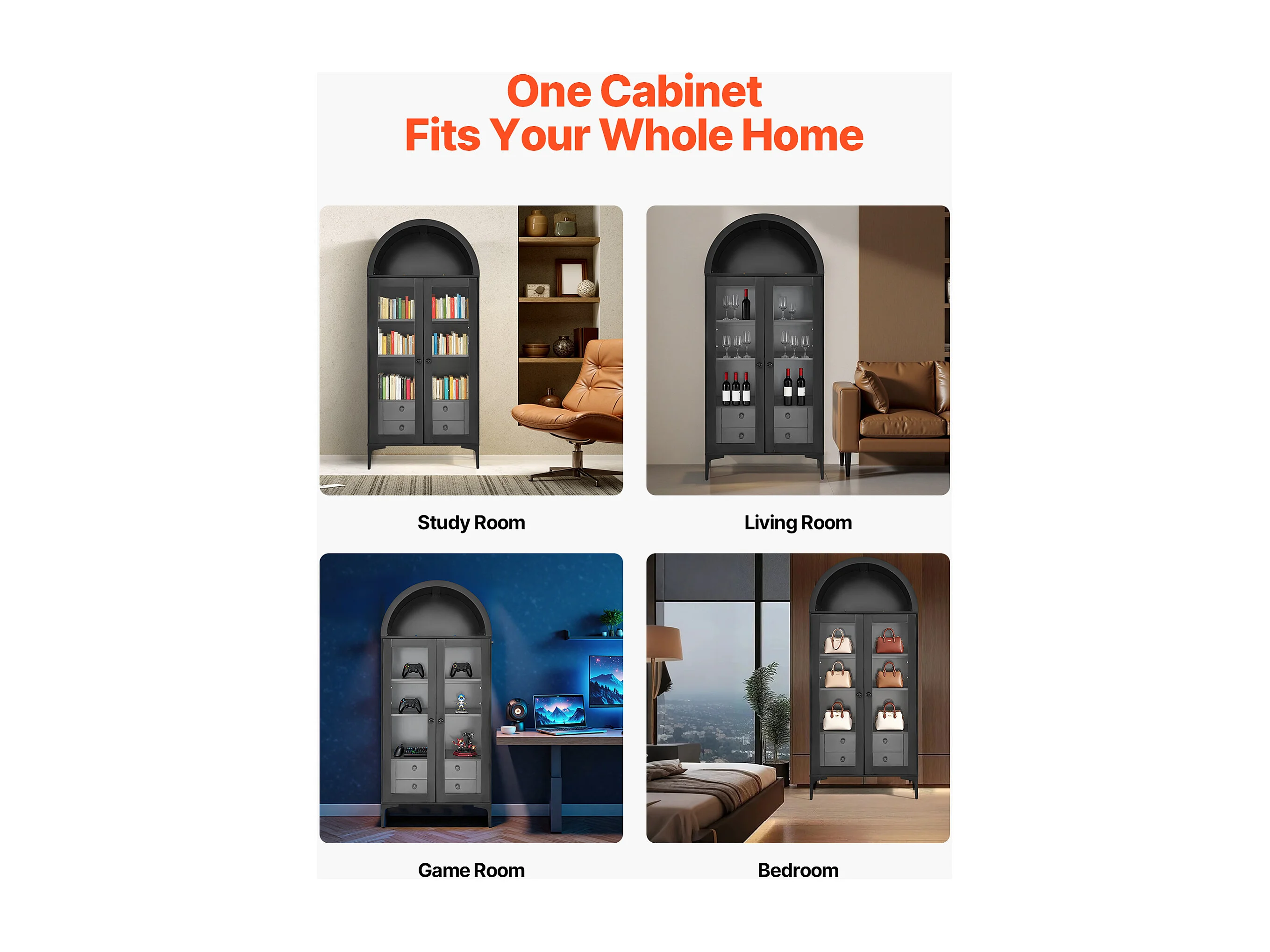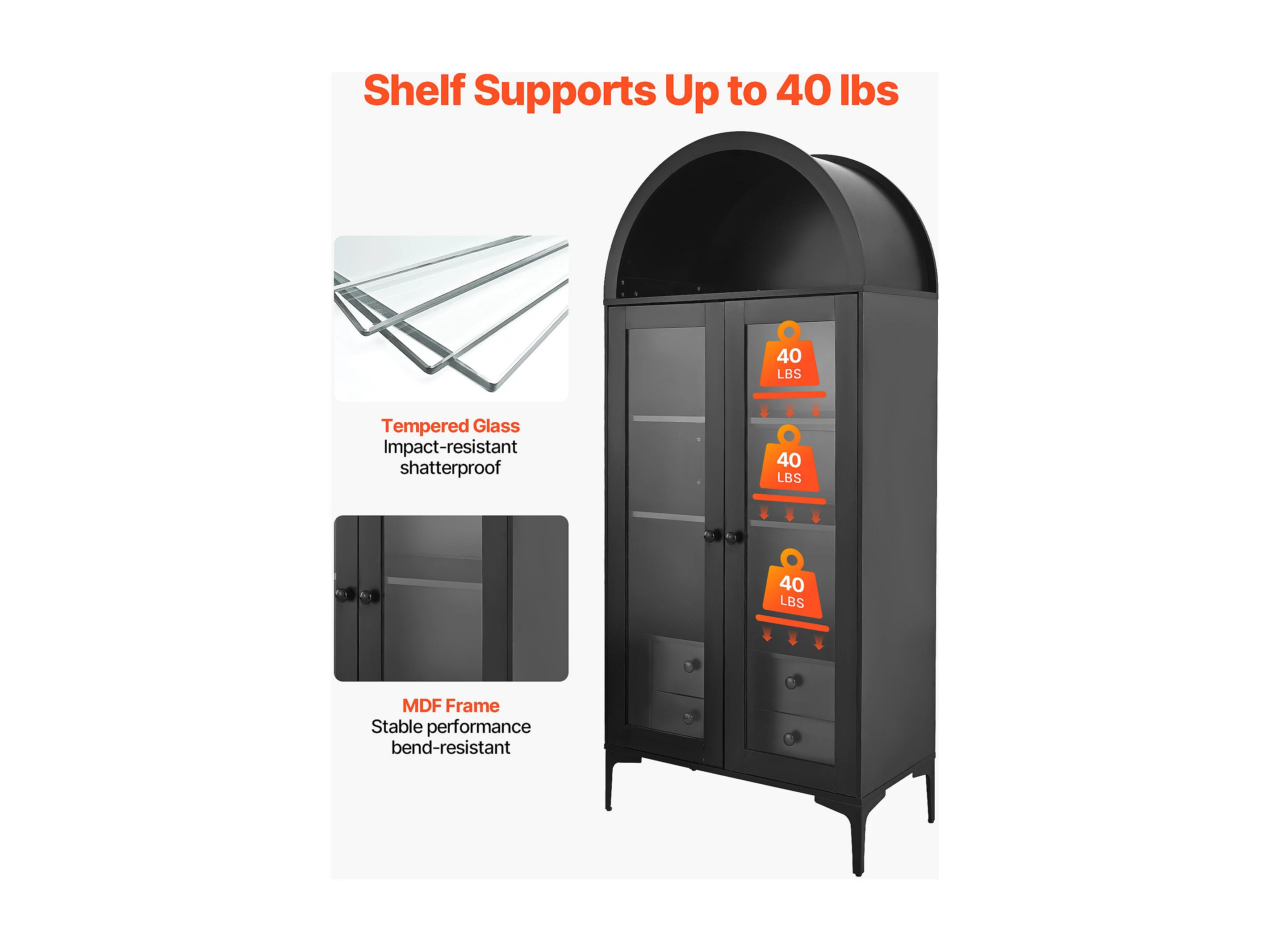 Vitrine SucceBuy pour Collection Arquée avec Portes Vitrées, Armoire de Présentation 179 cm de Haut, Présentoir pour Antiquités à 4 Niveaux avec 2 Étagères