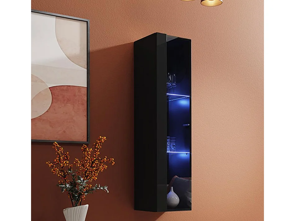 Vitrine suspendue pour Salon Salle à manger en Noir avec LED 30x30x120cm Berit LD