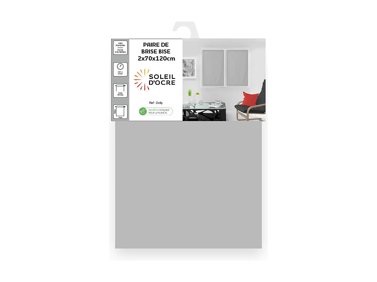 Paire de brise bise 70x120 cm DOLLY gris clair, par Soleil d'Ocre