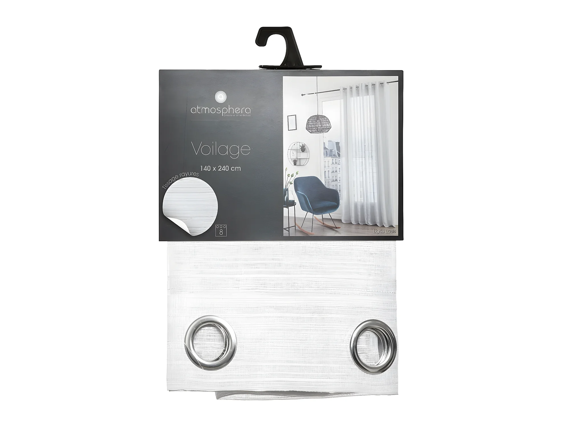 Voilage à œillets Blanc tissage à rayures 140 x 240 cm