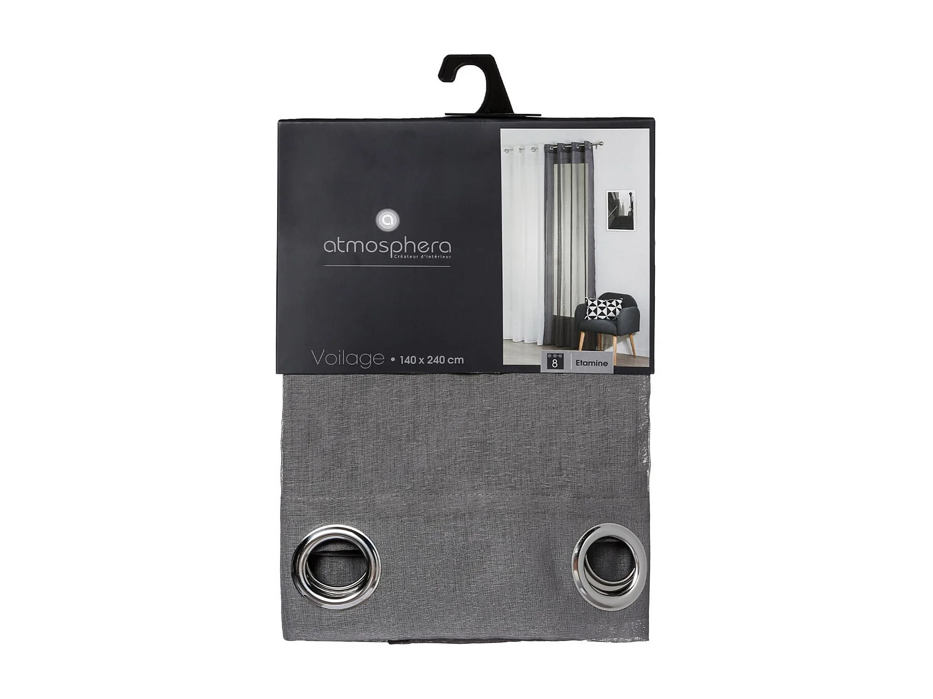 Voilage à œillets Etamine Gris 140 x 240 cm