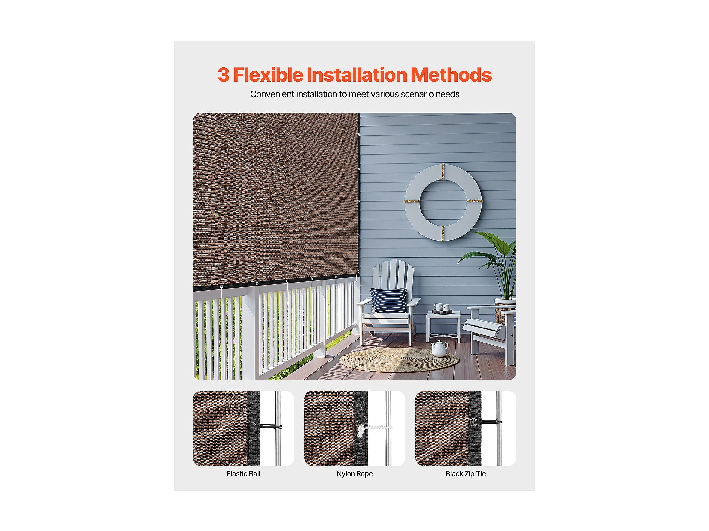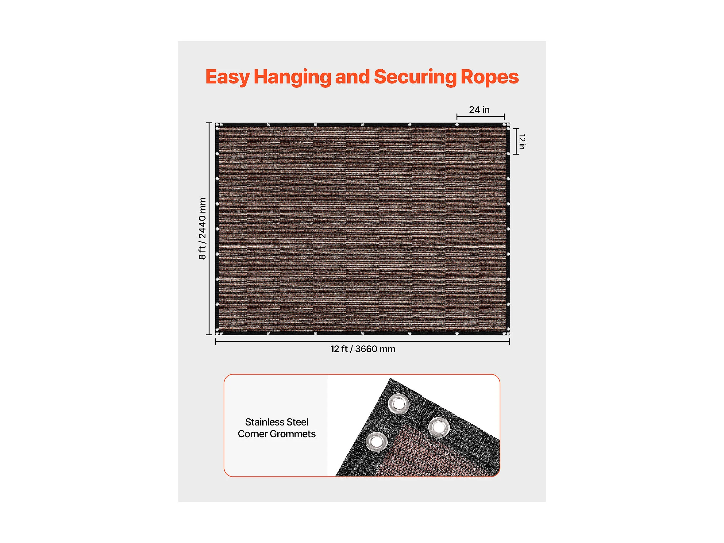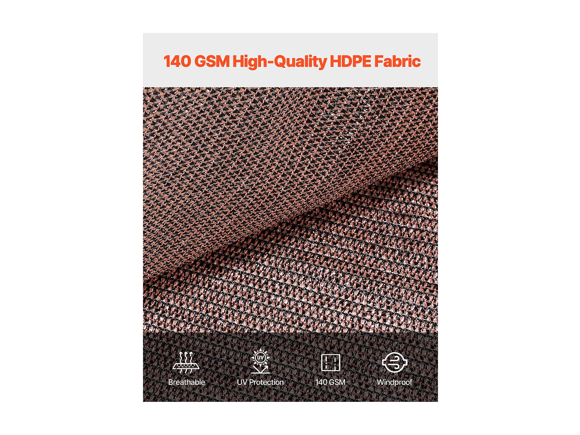 Voile d'Ombrage 90 % SucceBuy Filet d'Ombrage avec Œillets en Acier Inoxydable, Protection Solaire et Brise-Vue en PEHD 140 g/m², Marron, 3050 x 3660 mm