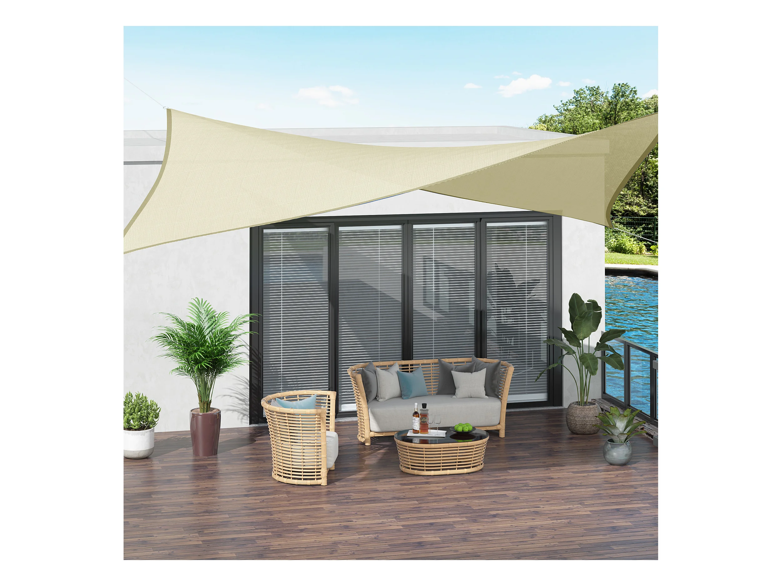 Voile d'ombrage rectangulaire 6L x 4l m polyester imperméabilisé haute densité 160 g/m² crème
